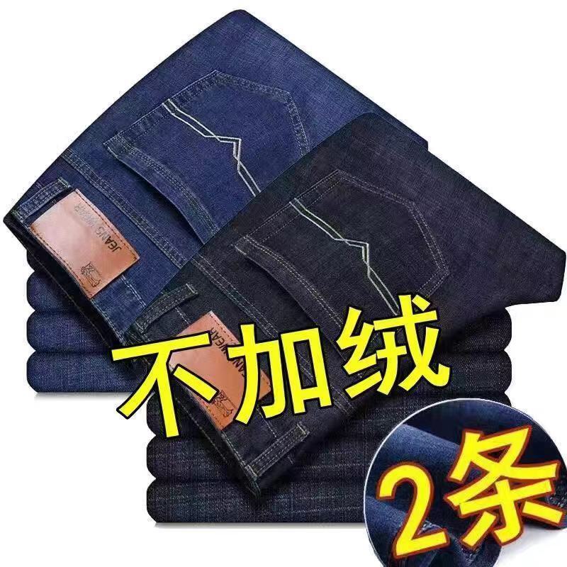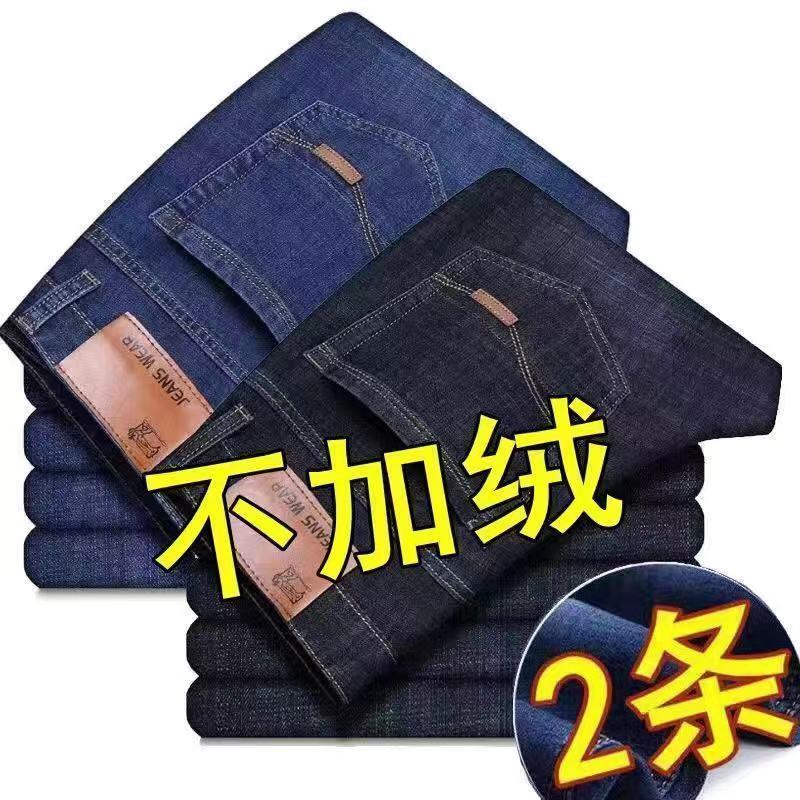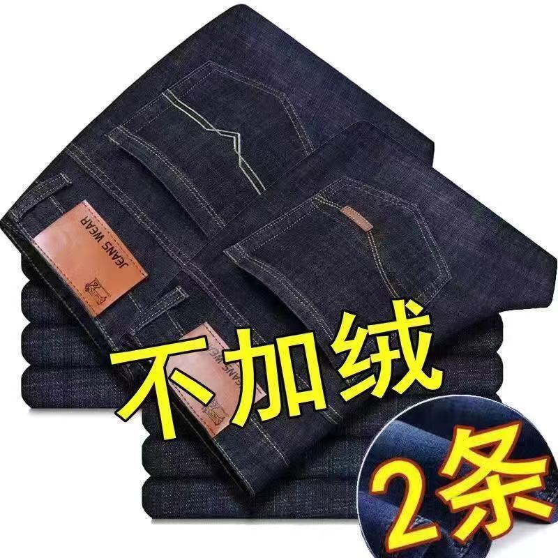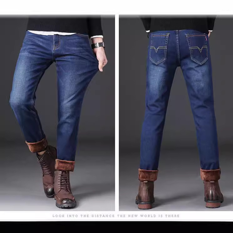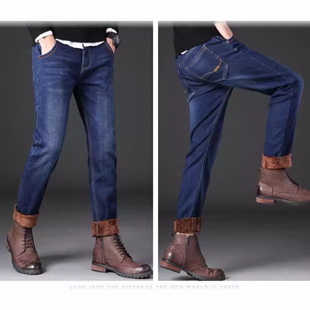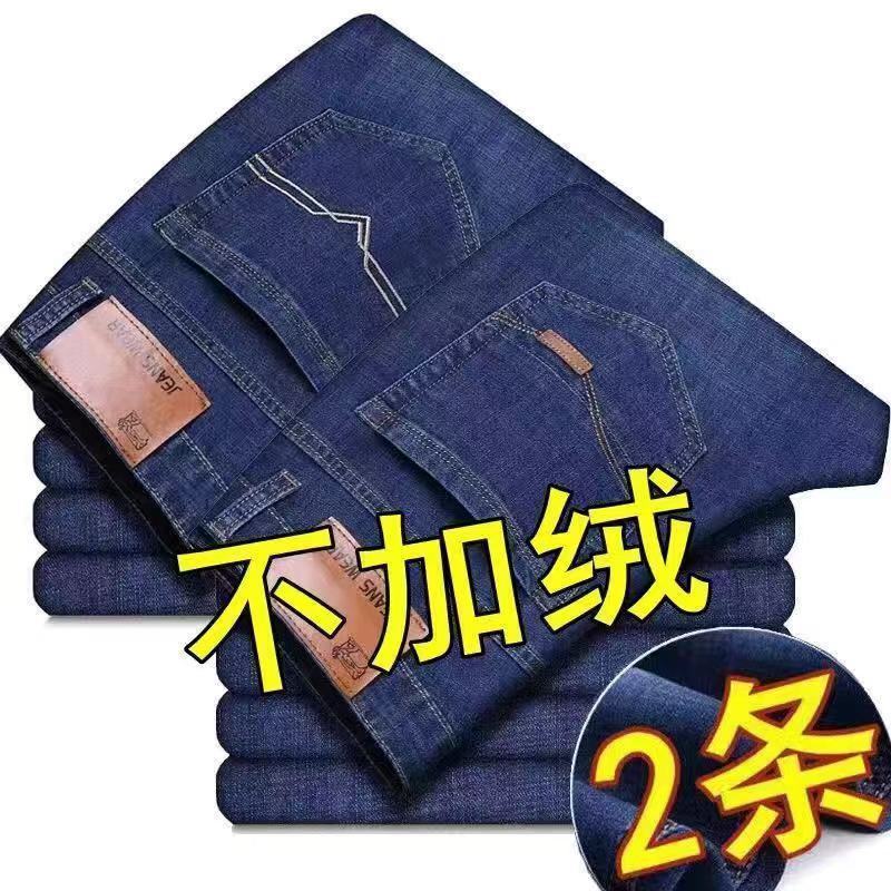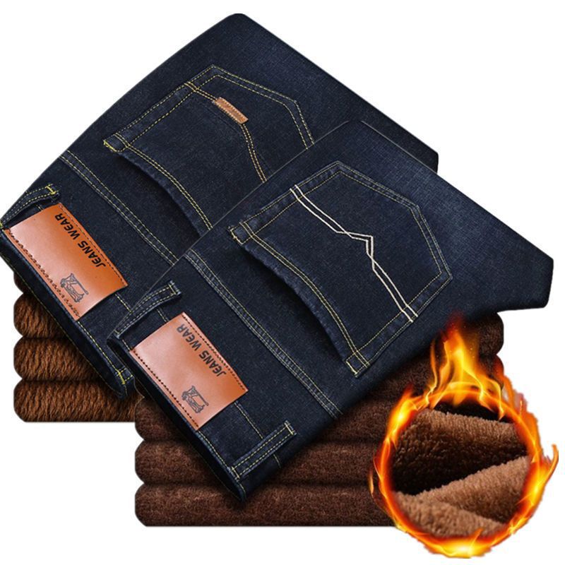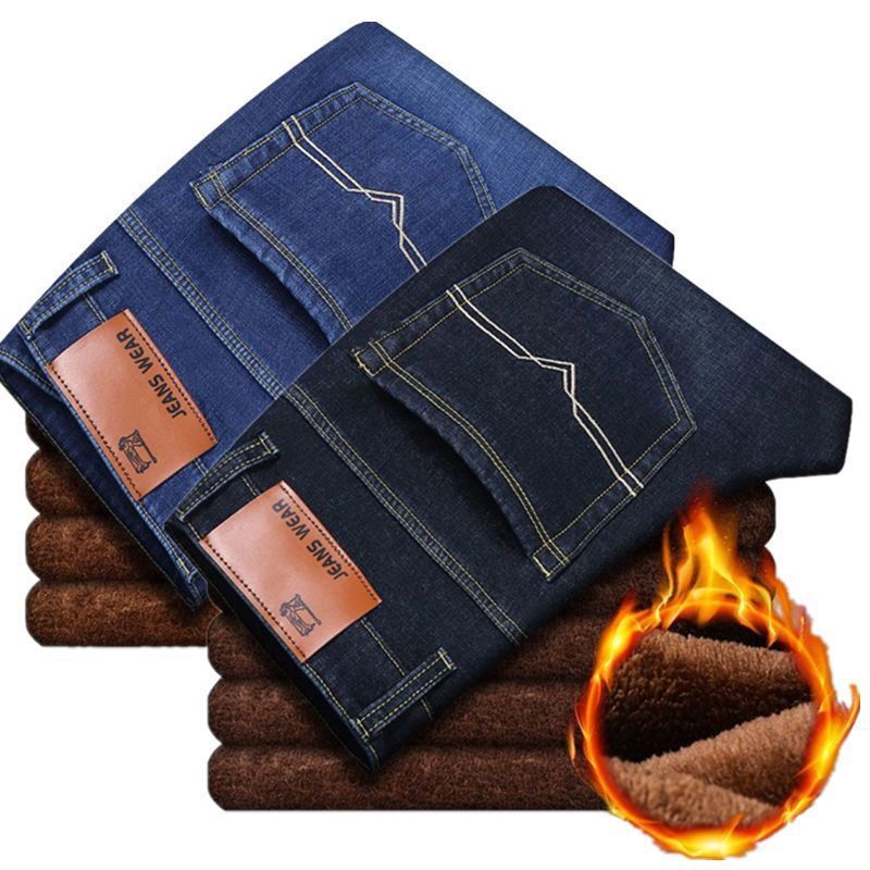 Autumn and winter new fleece jeans men's loose straight leg thick warm pants casual versatile work elastic pants