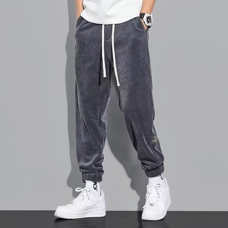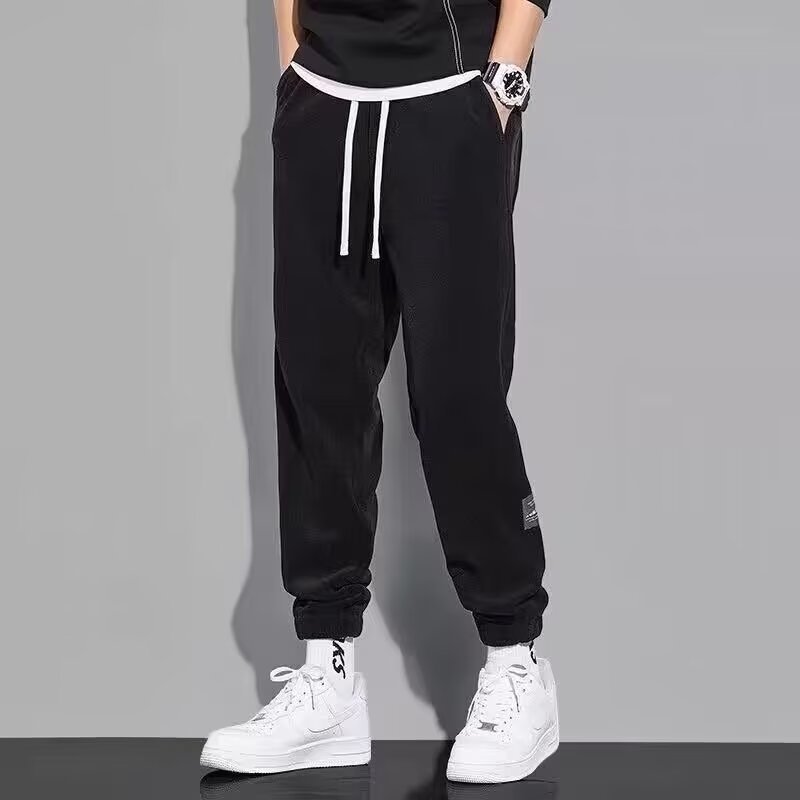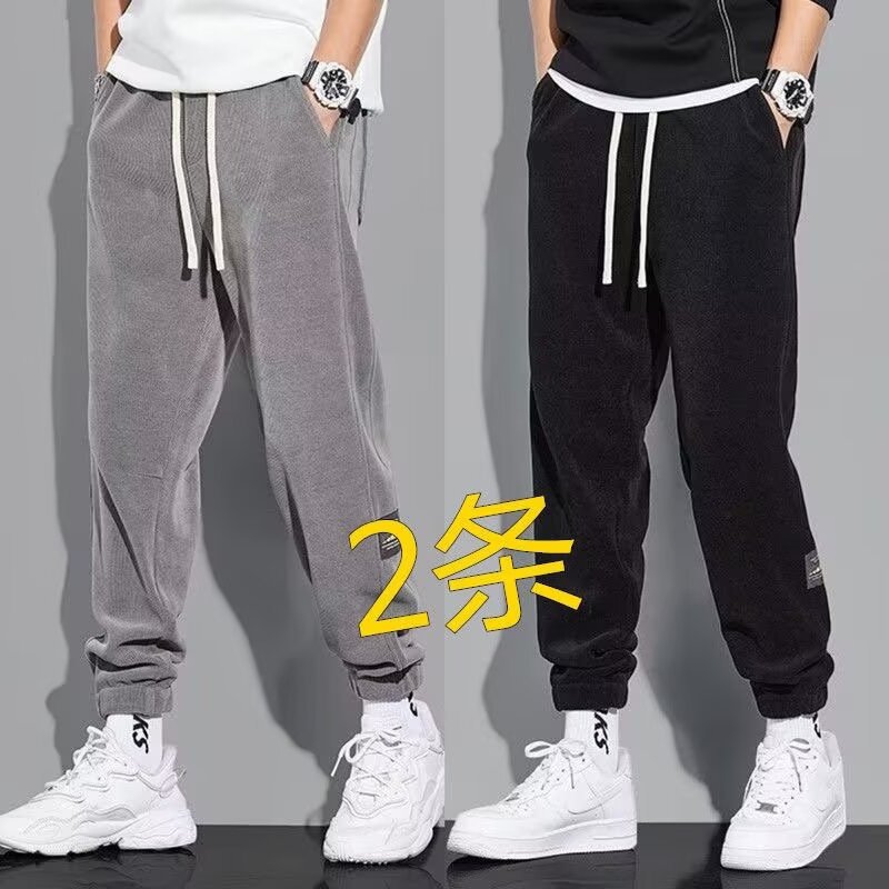 Loose fitting men's autumn new casual pants with bound feet, trendy drawstring pants for teenagers, versatile and sporty men