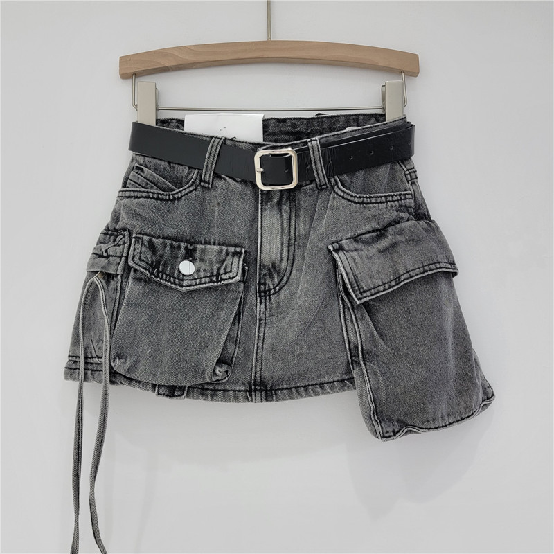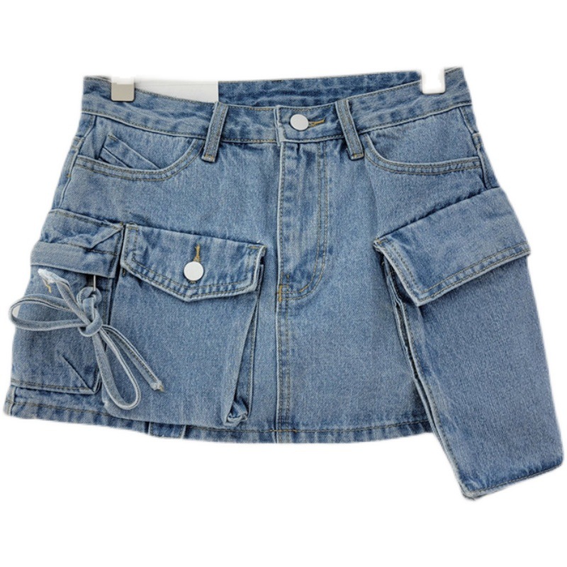 Irregular workwear denim short skirt for women in spring and summer, high waist, slimming effect, A-line anti slip, hip hugging, spicy girl half body skirt, trendy