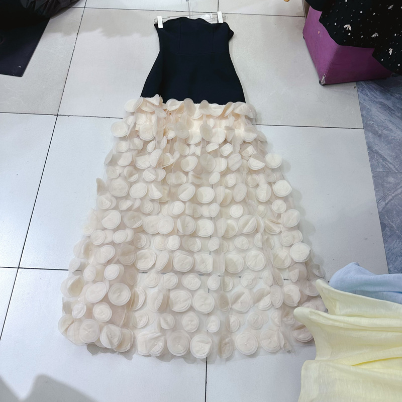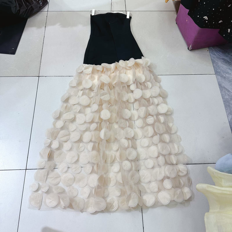 Thirteen lines new black strapless long dress with mesh arrangement for slimming effect, casual dress, formal dress A2 # 8171