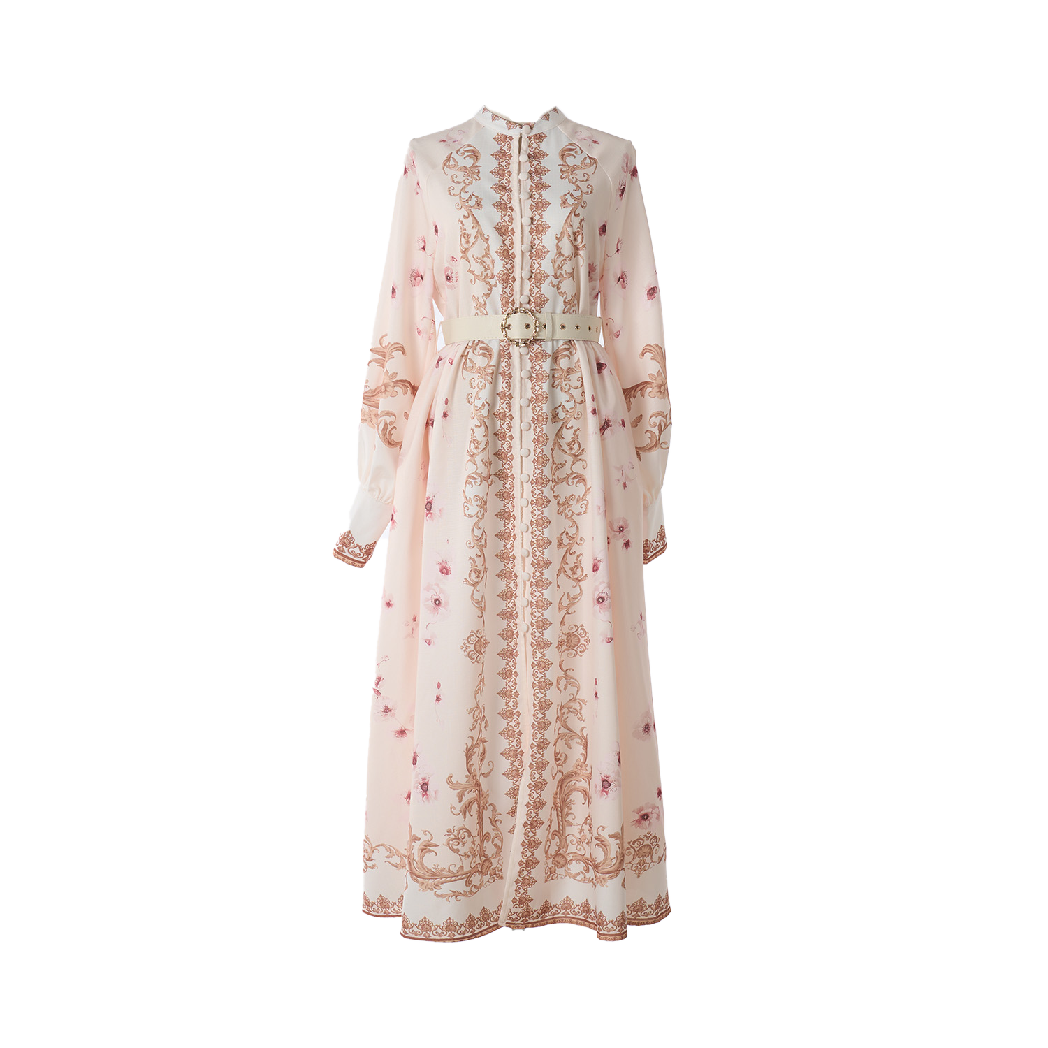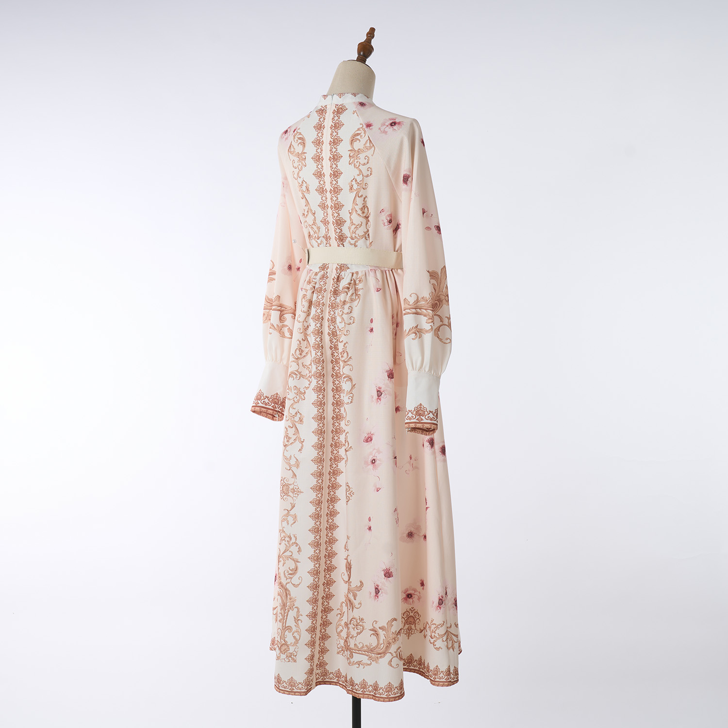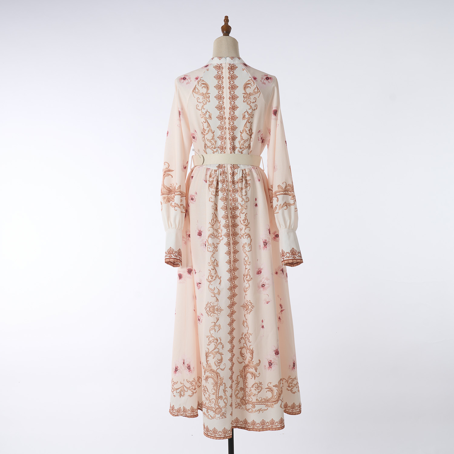 Real shot of Australian niche 2025 new off shoulder exquisite printed suspender V-neck high waisted fairy dress