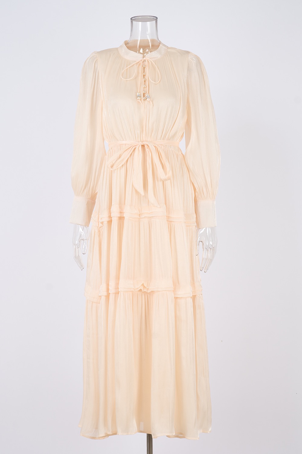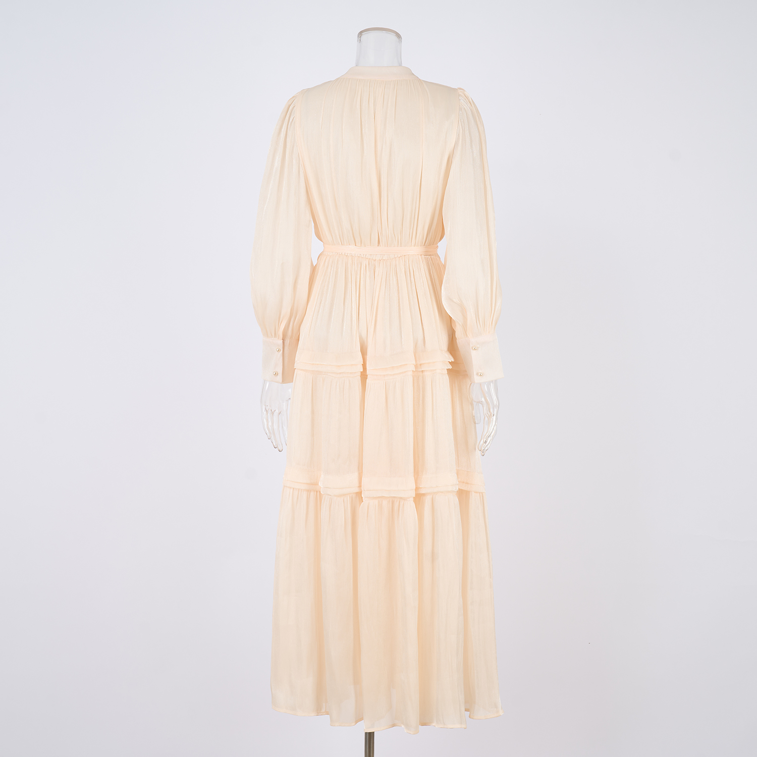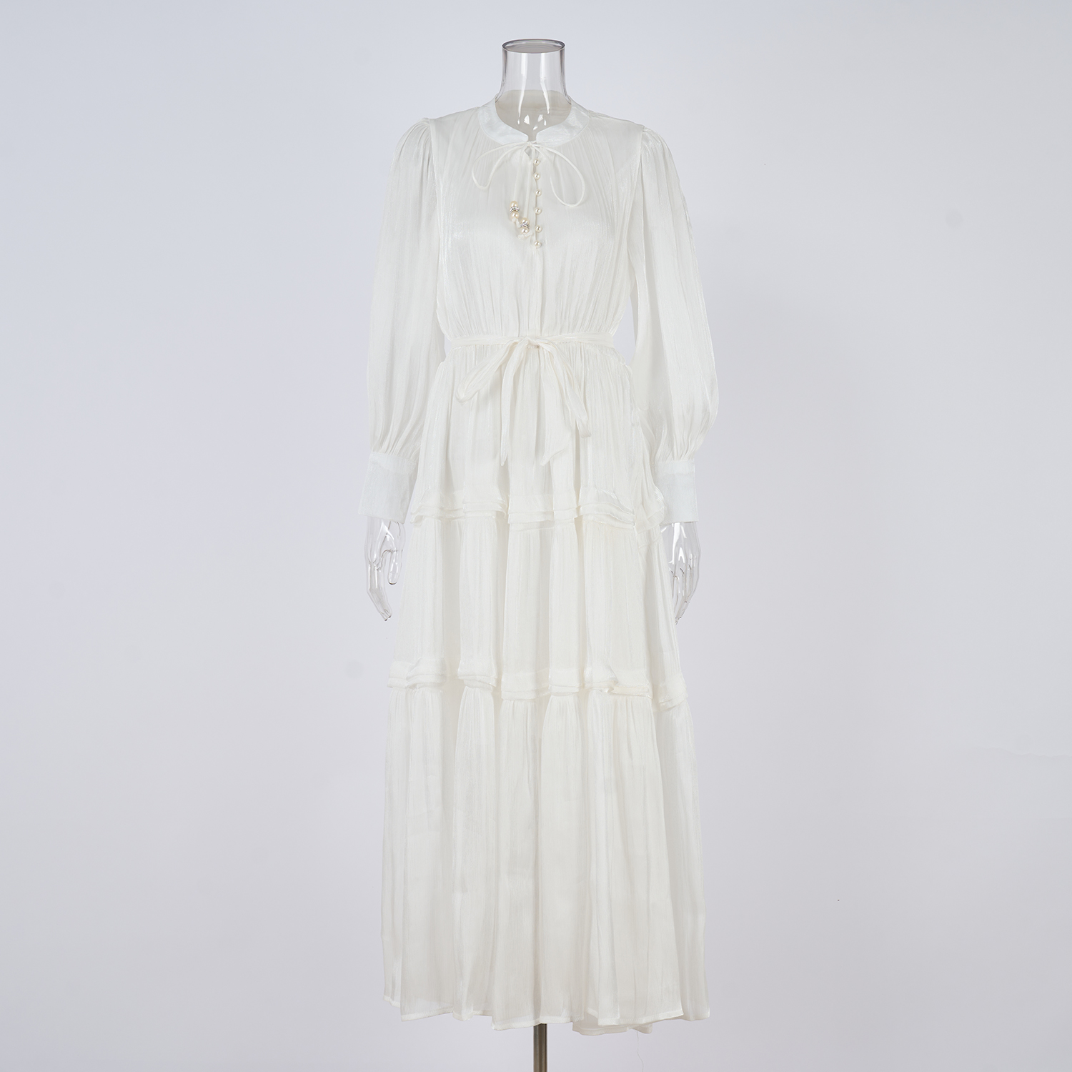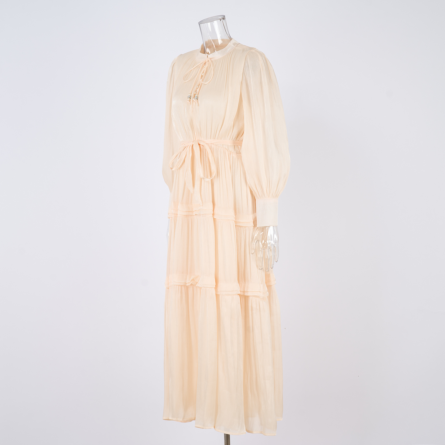 Real shooting of European and American style autumn new women's long sleeved dress with loose waist and slimming temperament long skirt in 8 colors