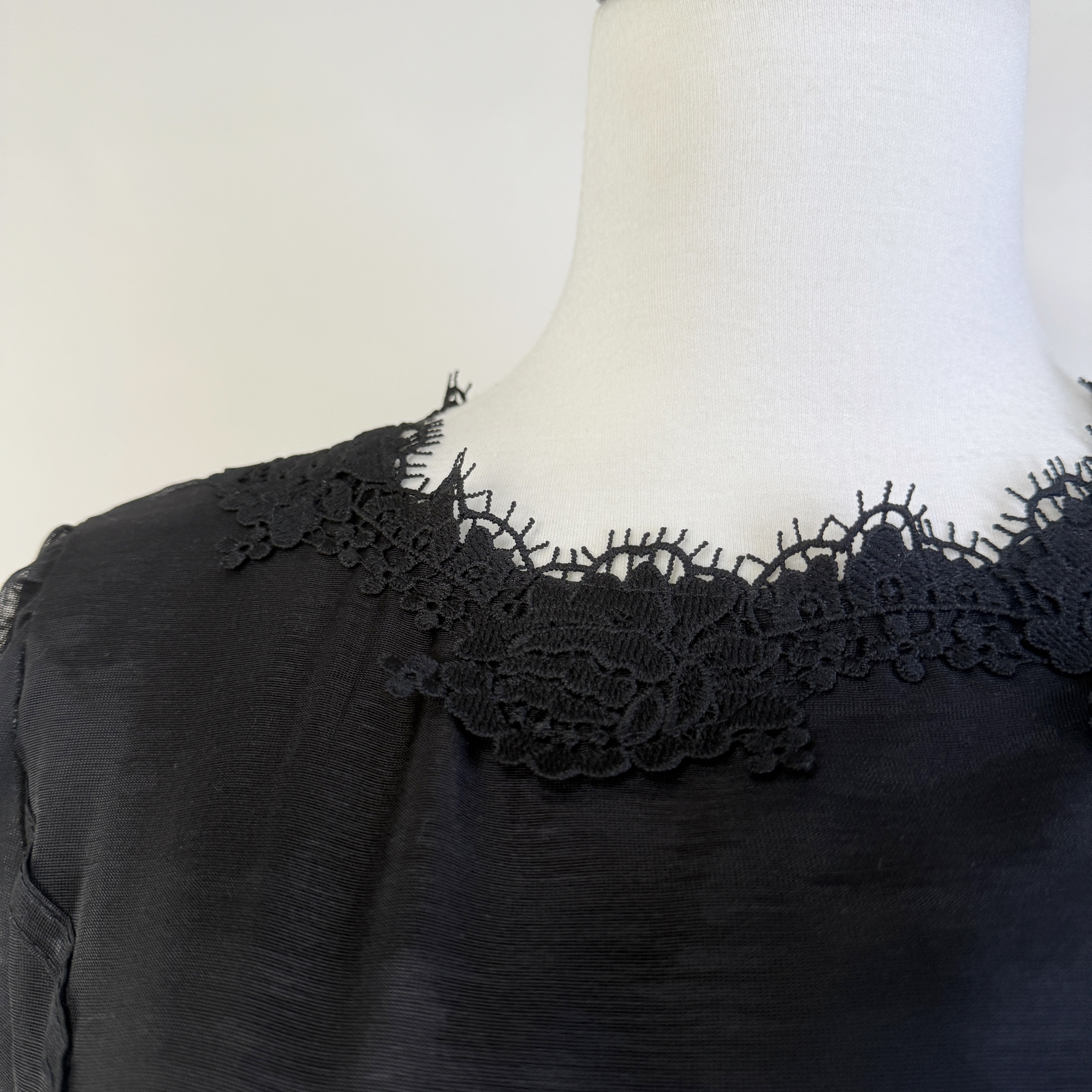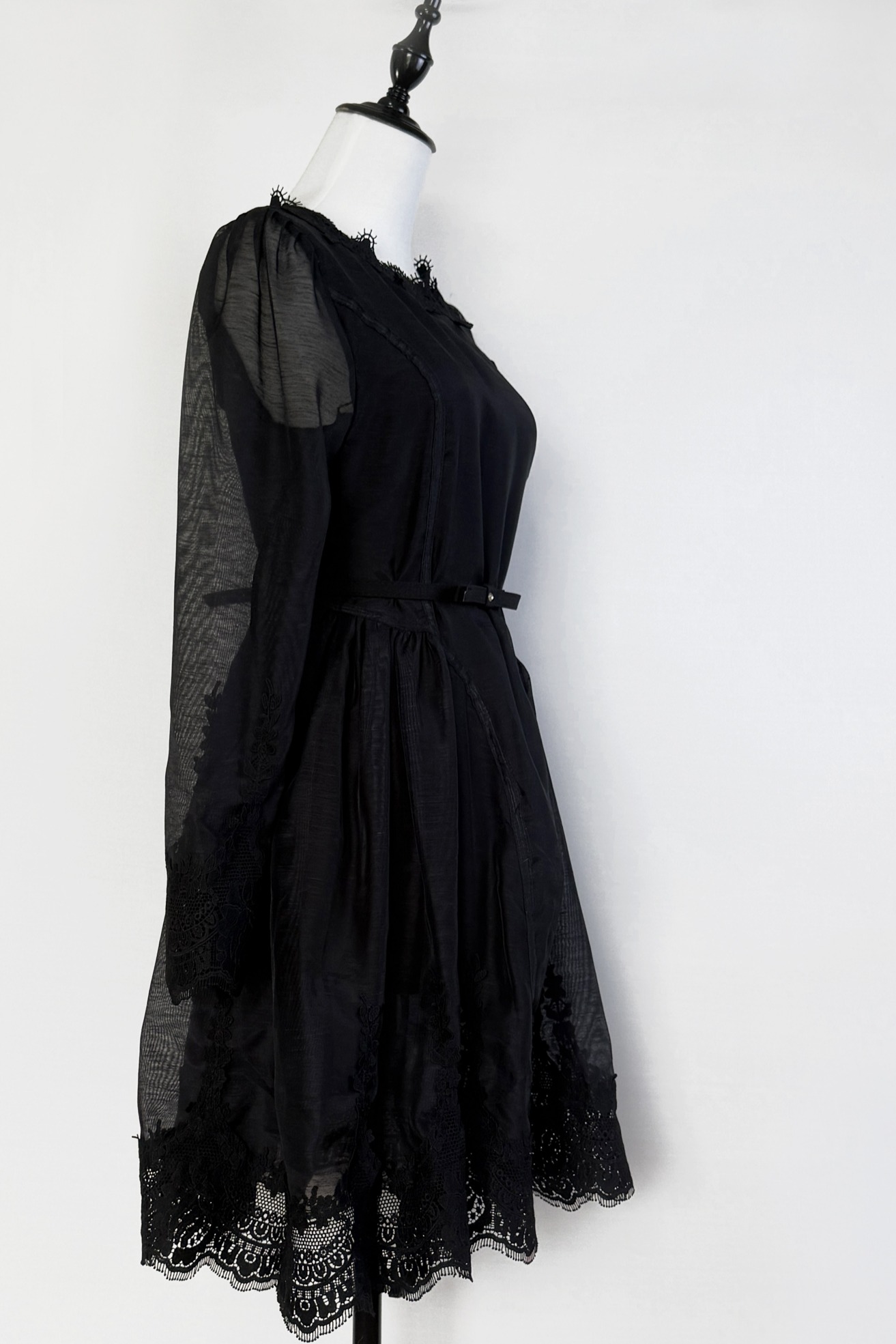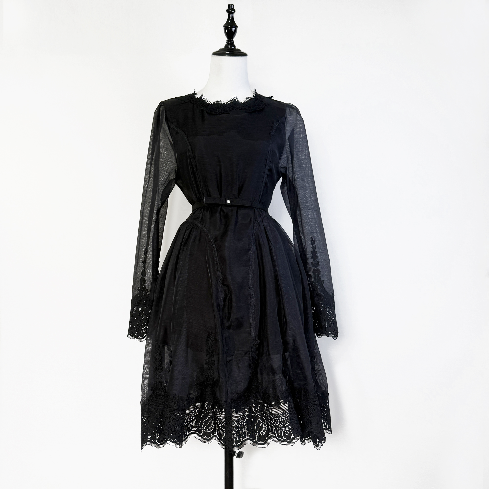 Real shooting of the 2025 new fashion style elegant retro high-end socialite black mesh lace dress
