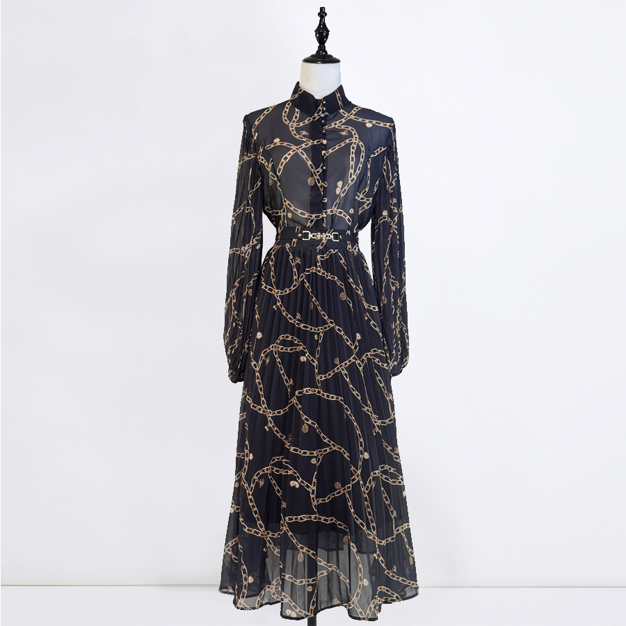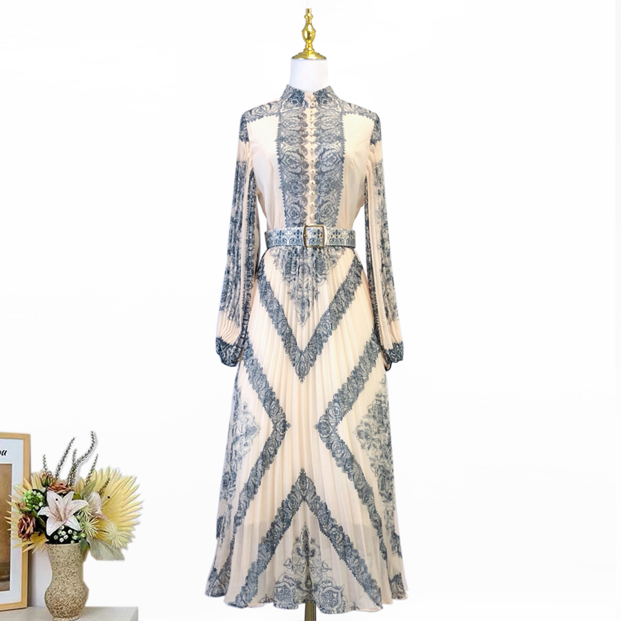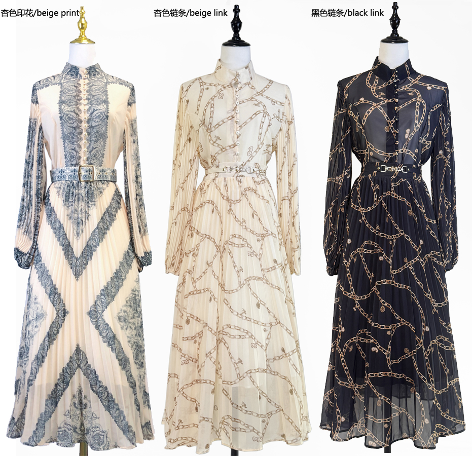 Realistic photo of 25 autumn/winter cream colored pendant pattern, sun pleated women's shirt+pleated skirt set