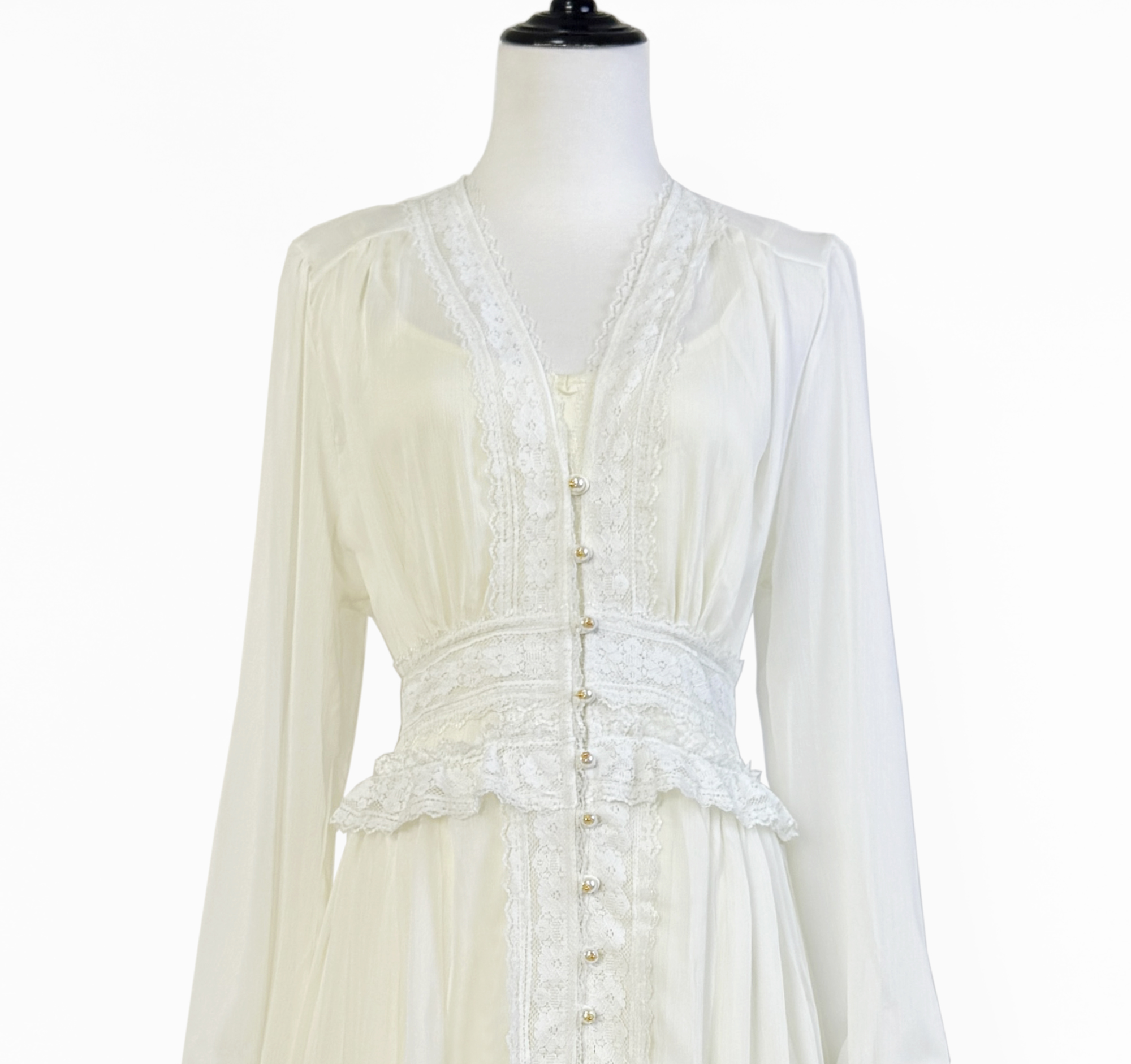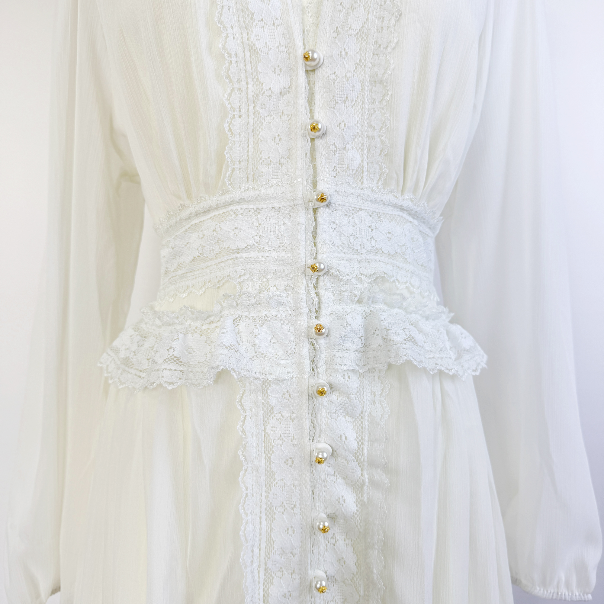 Real shot of Z's light luxury high-end French heavy industry lace patchwork elegant temperament V-neck pearl button dress