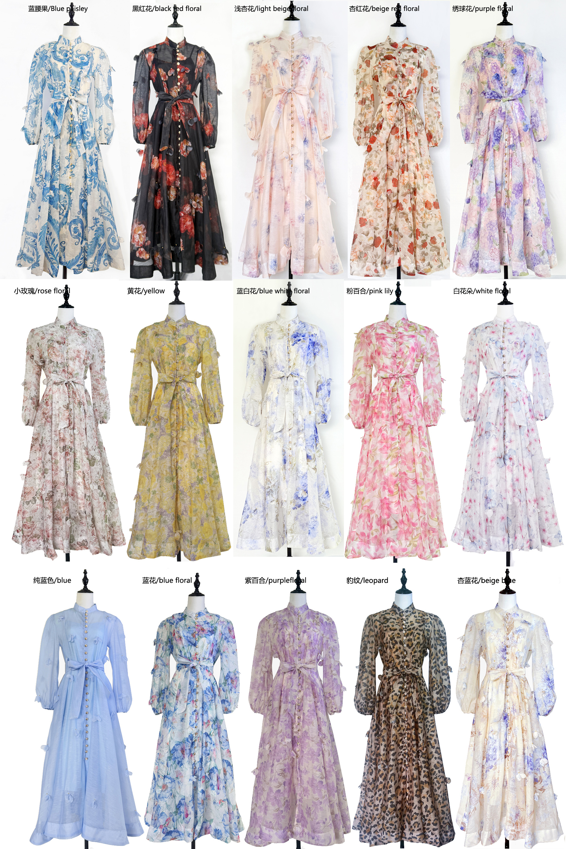 Real shot Australian printed flower pendant patterned button long sleeved long sleeved dress with a large skirt, party skirt