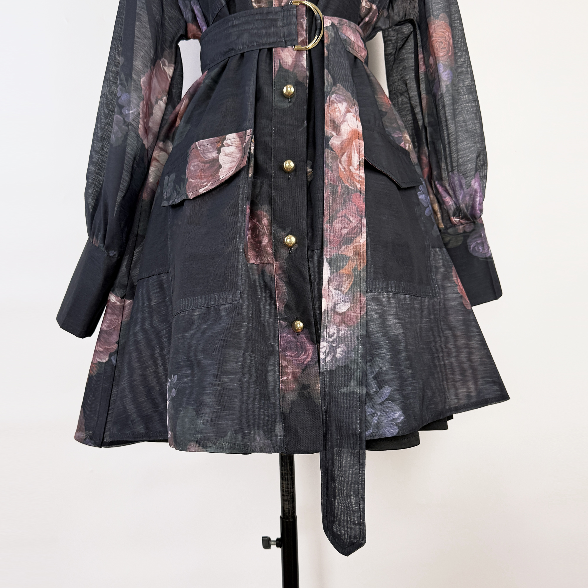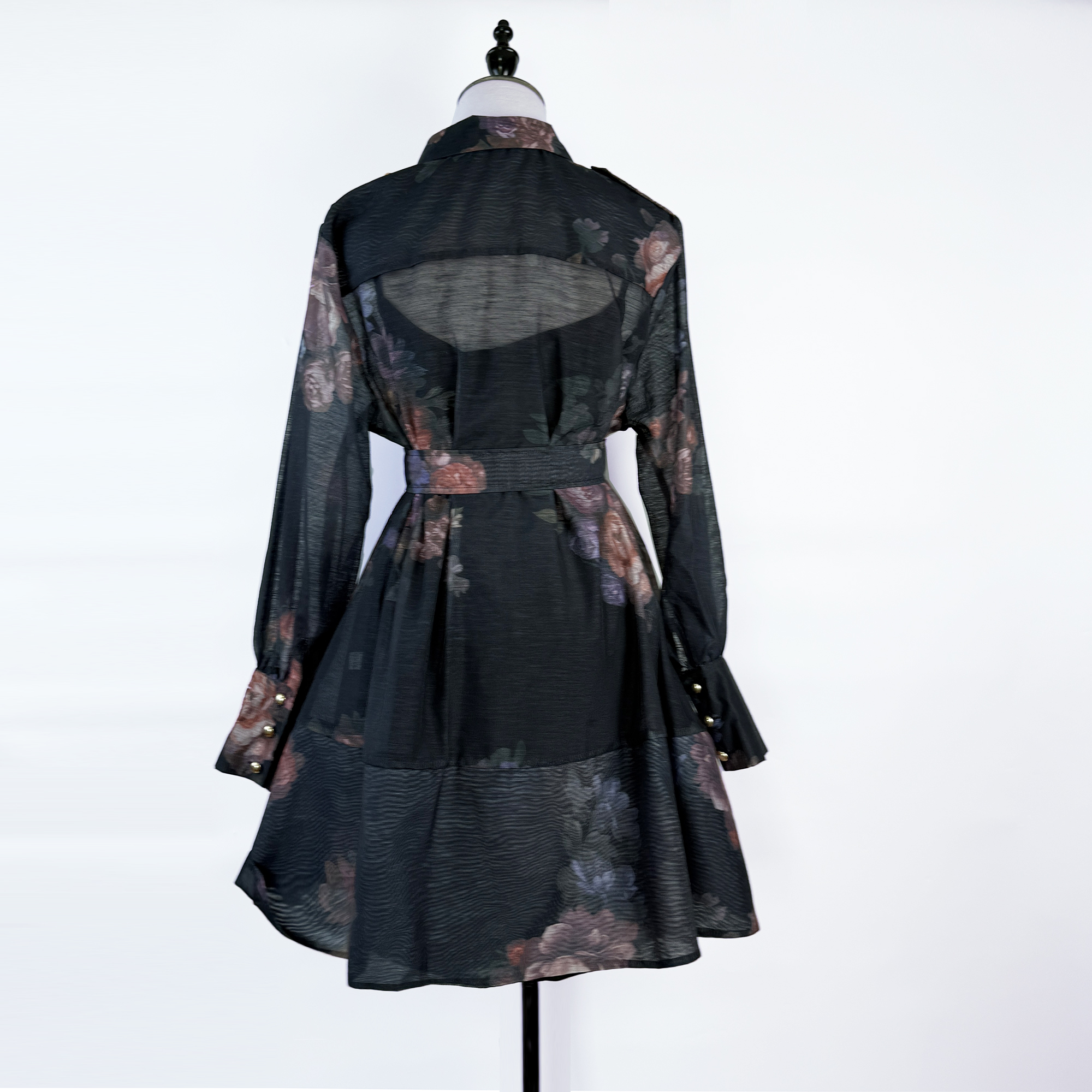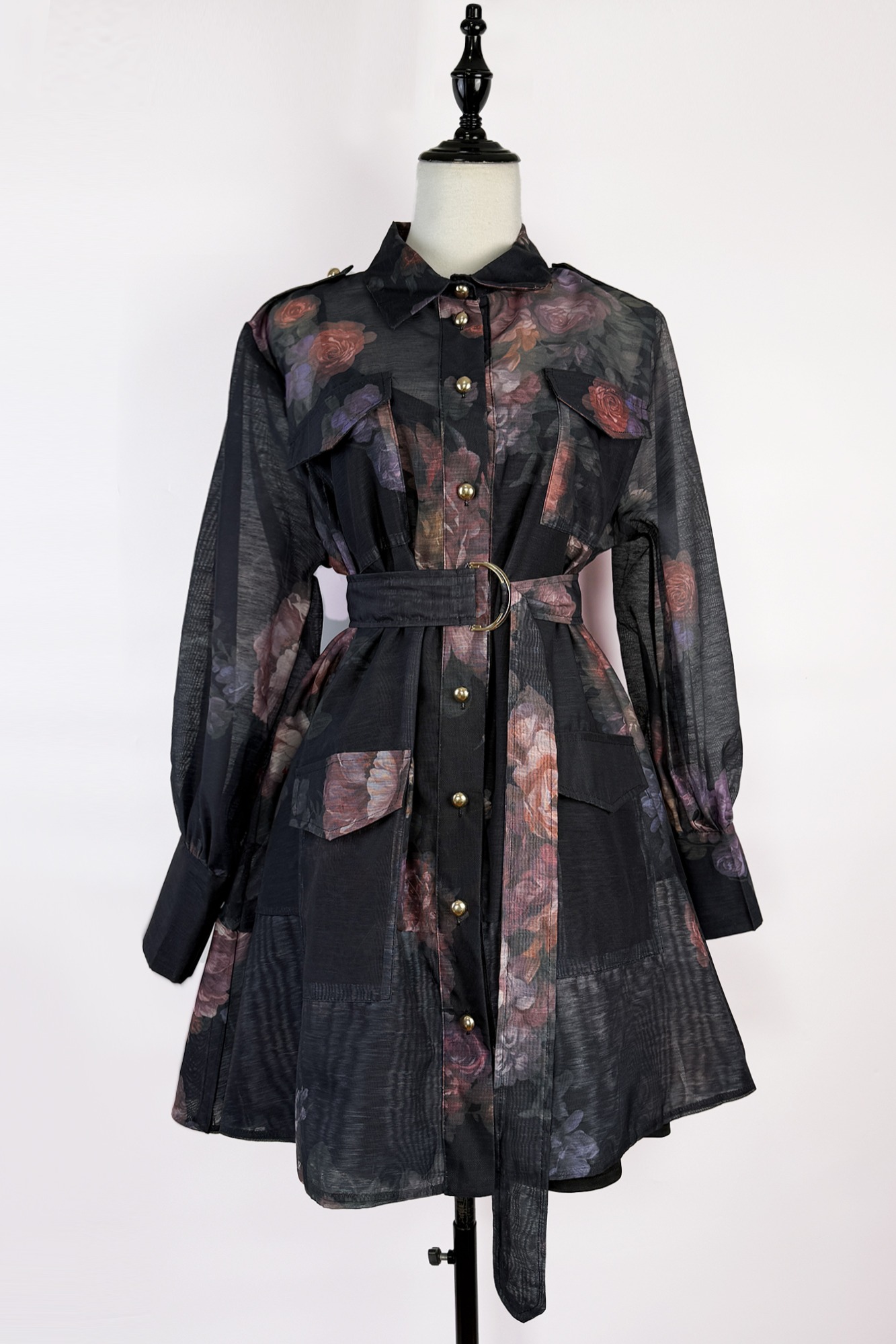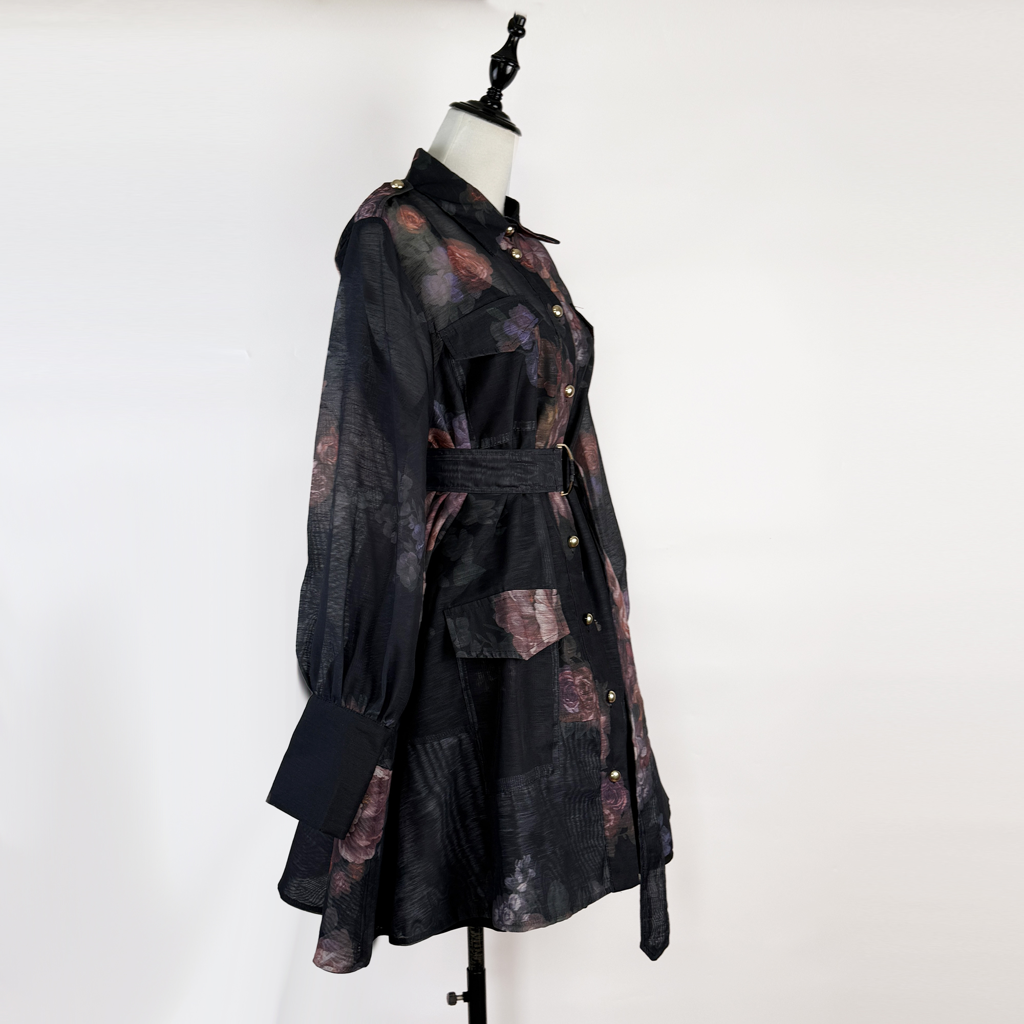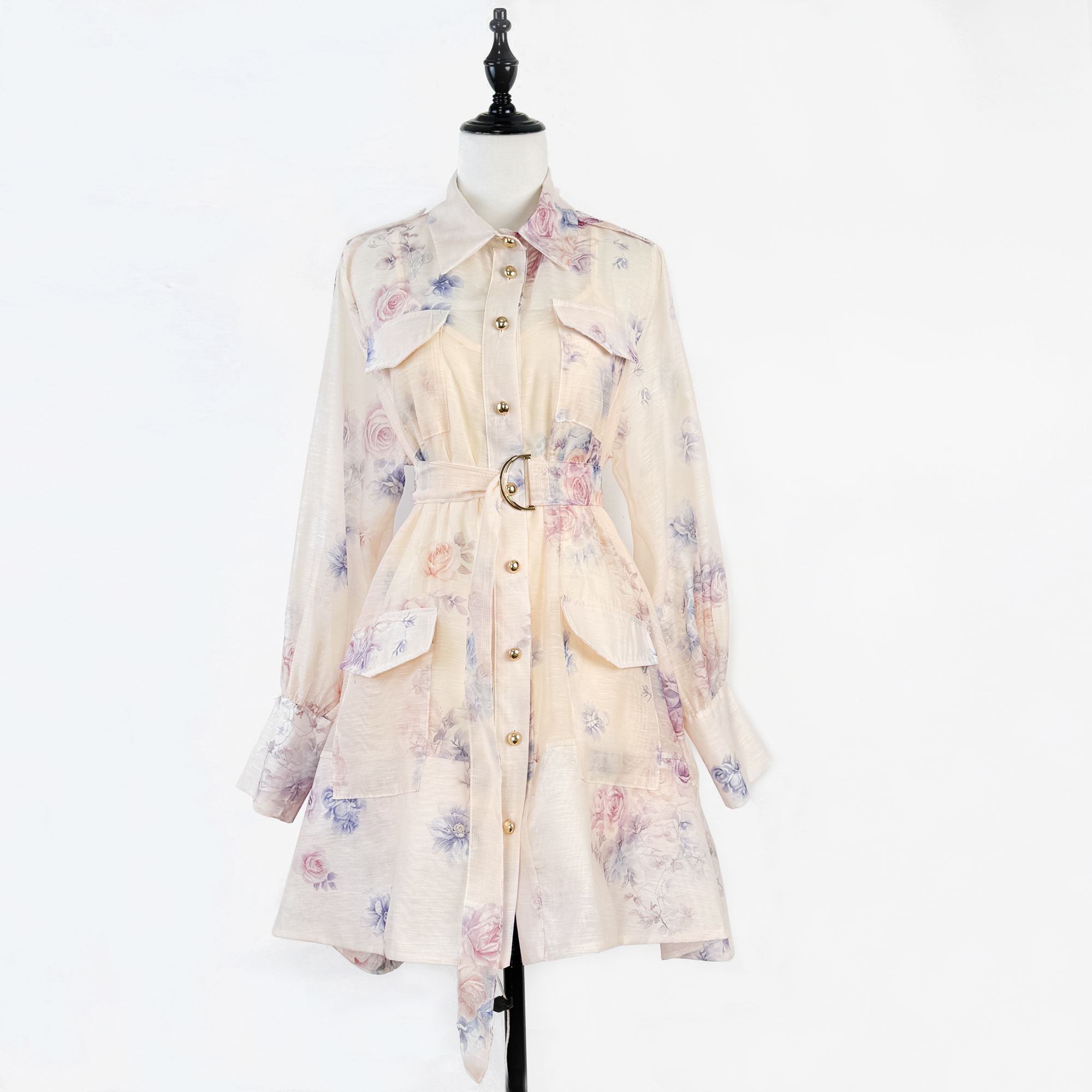 Real shot Australian design style lapel single breasted waist pocket dress long sleeved casual vacation skirt short skirt for women