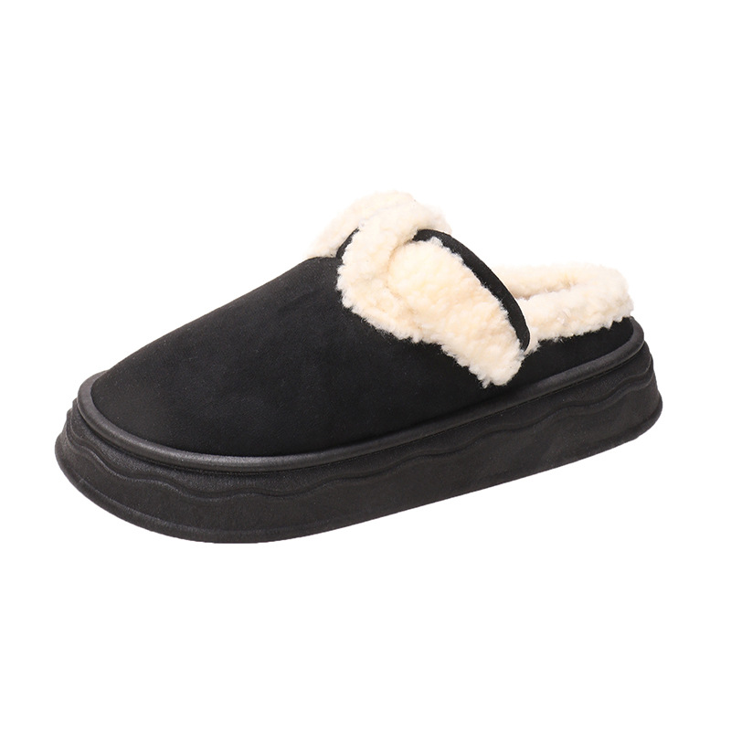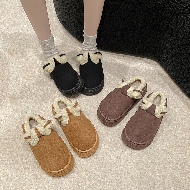 Thick soled velvet 2023 winter new women's outdoor snow cotton shoes, casual warm flat slippers, toe wrapped hairy shoes