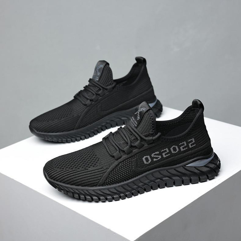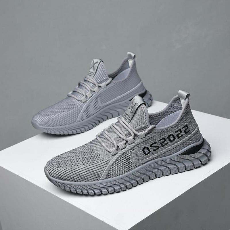 New men's flat bottomed lace up fly woven breathable sports shoes, fashionable and casual casual shoes, outdoor running cross-border trendy shoes
