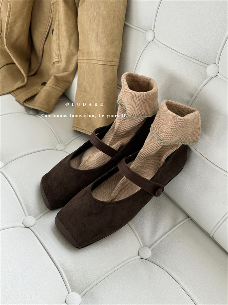 Fang Tou Mary Jane Shoes Women's Shoes 2023 Autumn/Winter New Collection Suede Strap Retro Matching Skirt with Velvet Single Shoes