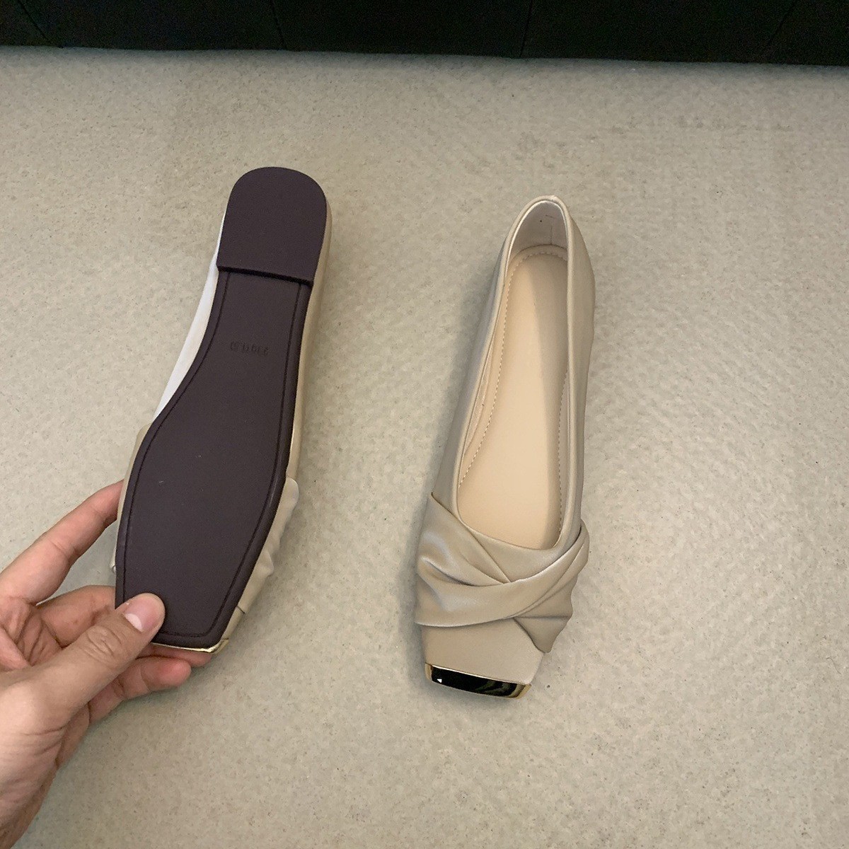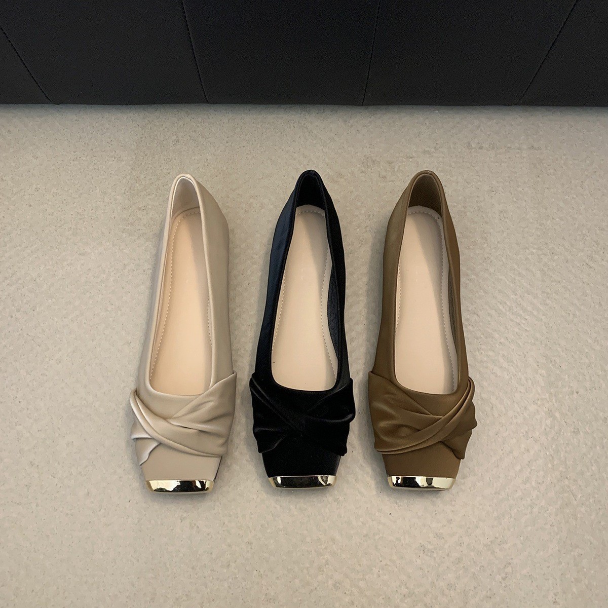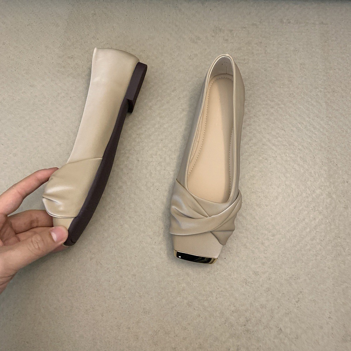 Design sense square toe flat bottomed low order shoes for women's spring and autumn new style with skirt temperament grandma shoes