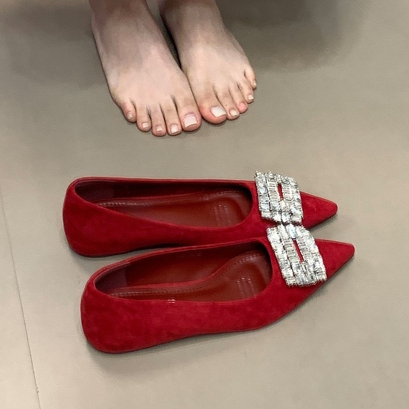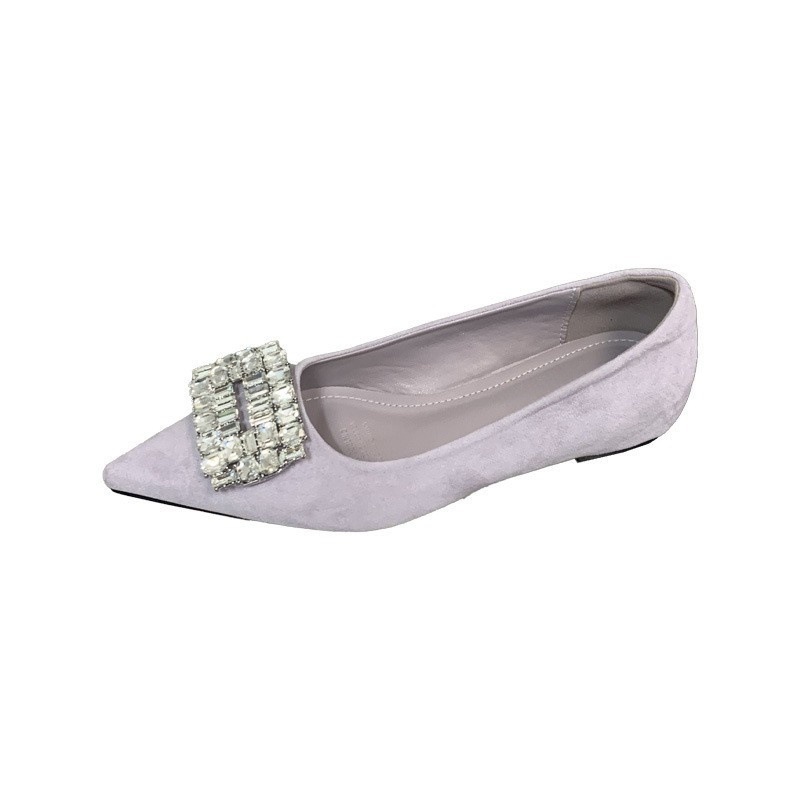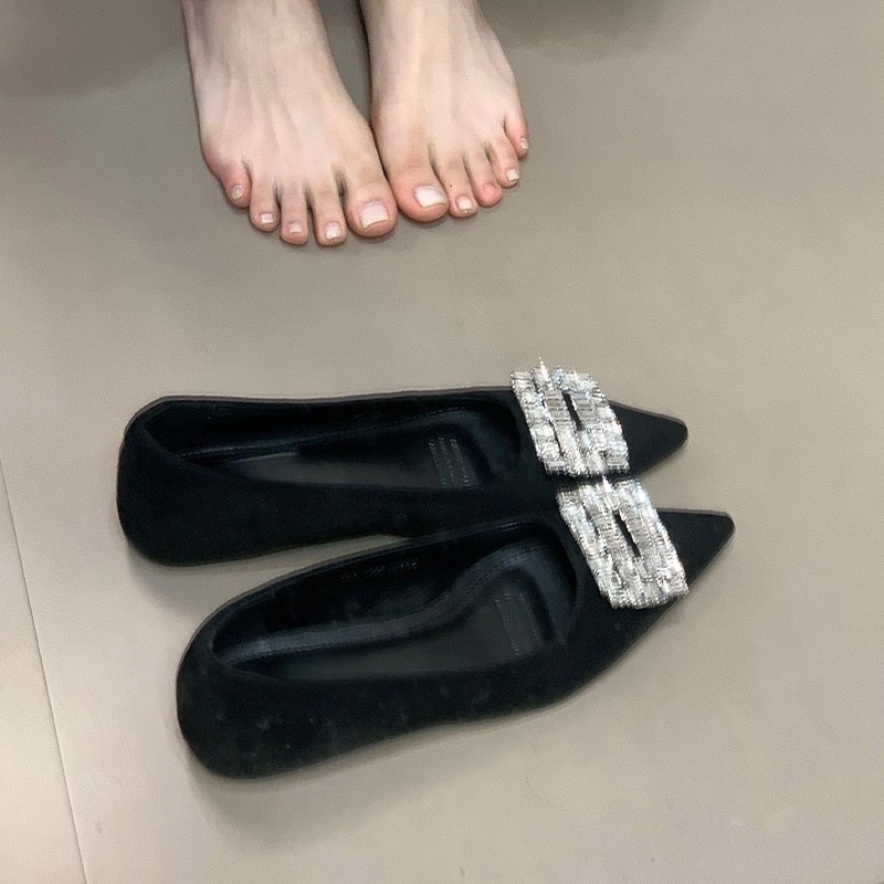 Fashionable interior height increasing versatile evening shoes, shallow mouth rhinestone square buckle scoop shoes, pointed temperament single shoes for women