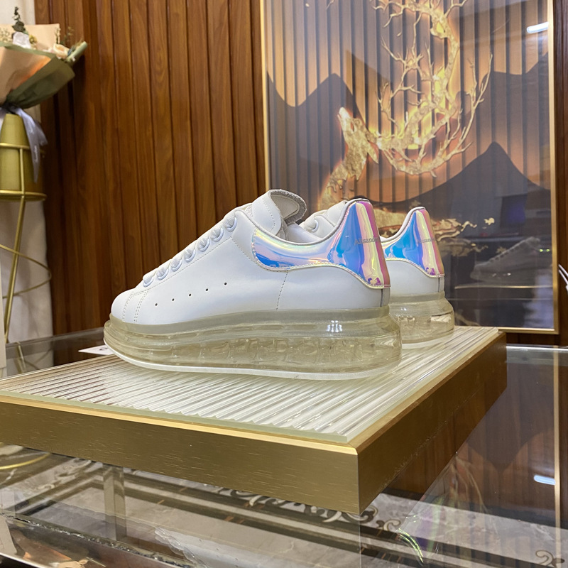 European Men's Shoe Season McQueen Air Cushion White Shoes Silver Tail Transparent Bottom Couple's Sponge Cake Shoes Versatile Casual Board Shoes Trend