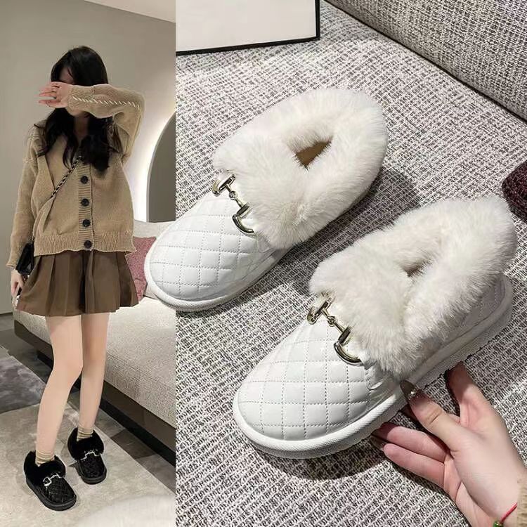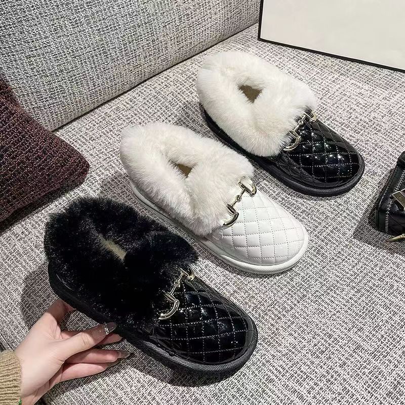 New women's snow boots, winter casual shoes with plush cotton boots, low cut, one foot lazy bean shoes