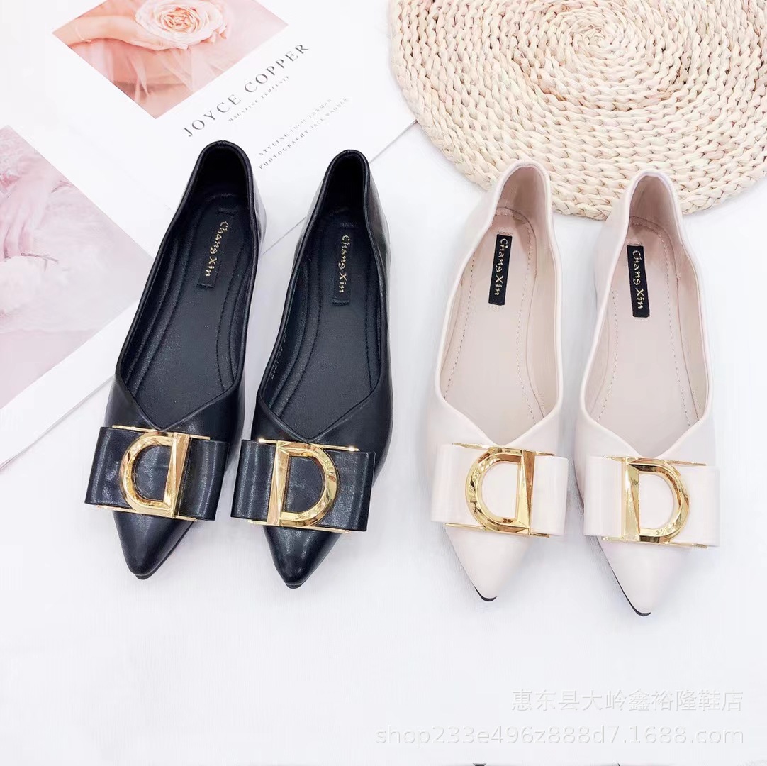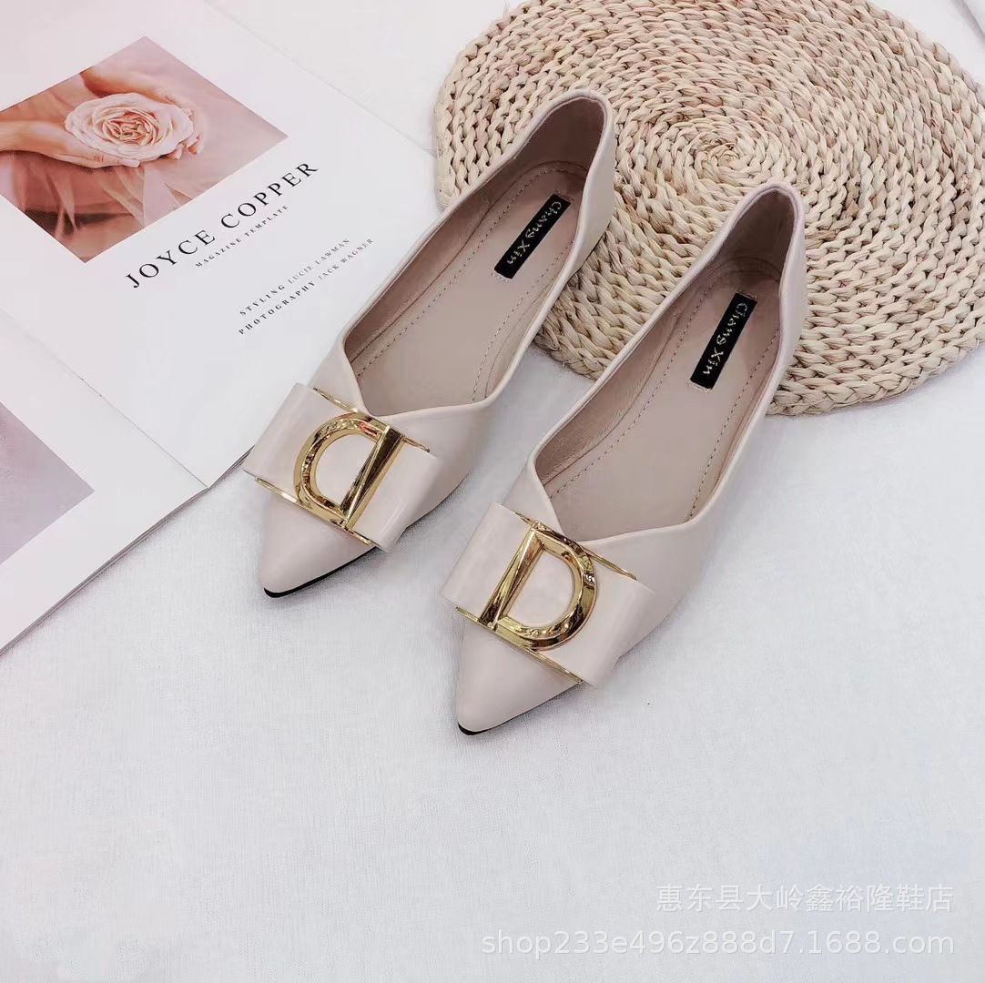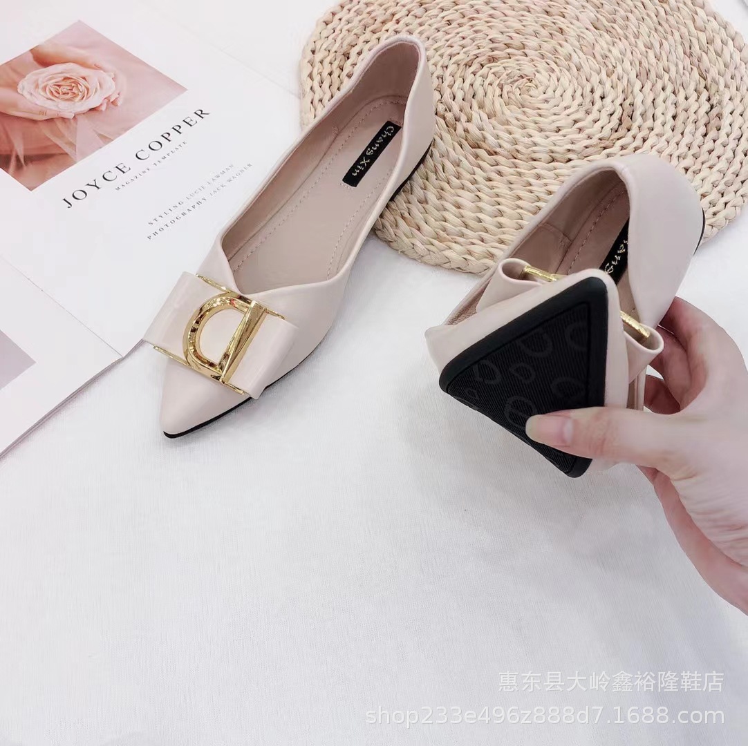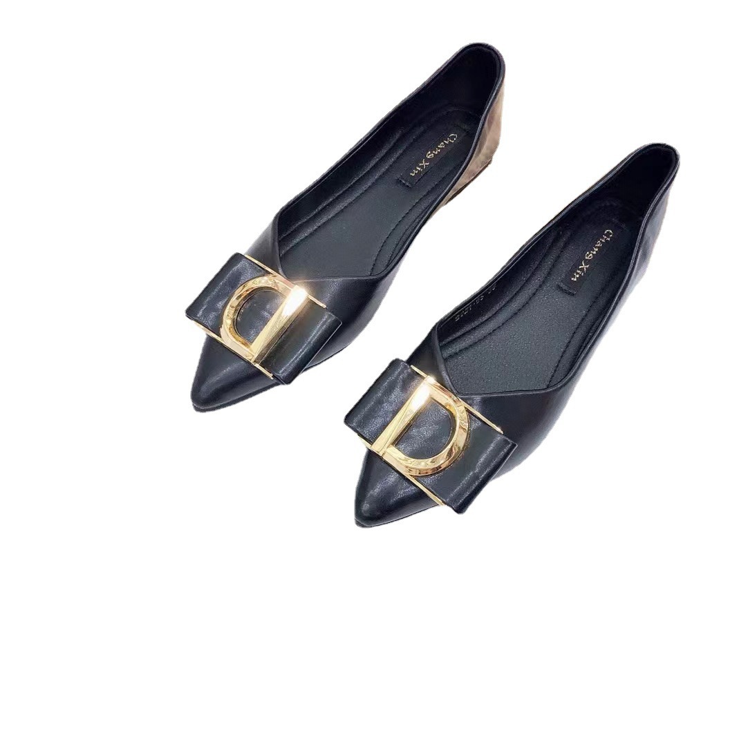 2022 new pointed shallow mouth flat shoes Korean version fashionable casual women's single shoes metal decorative buckle flat shoes