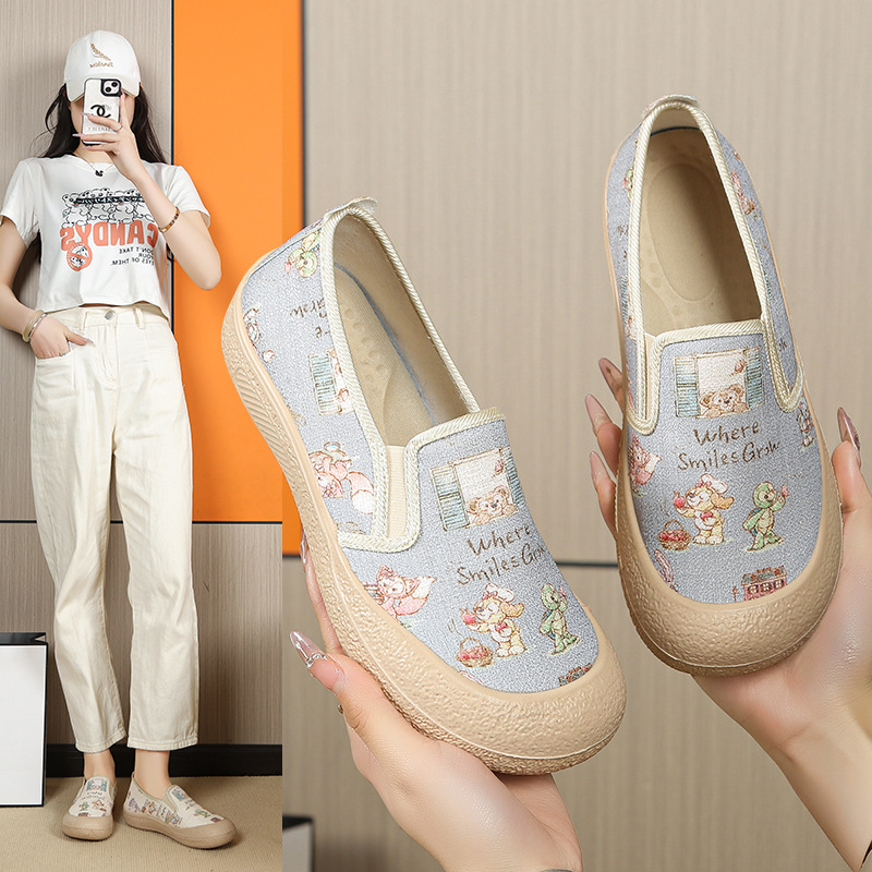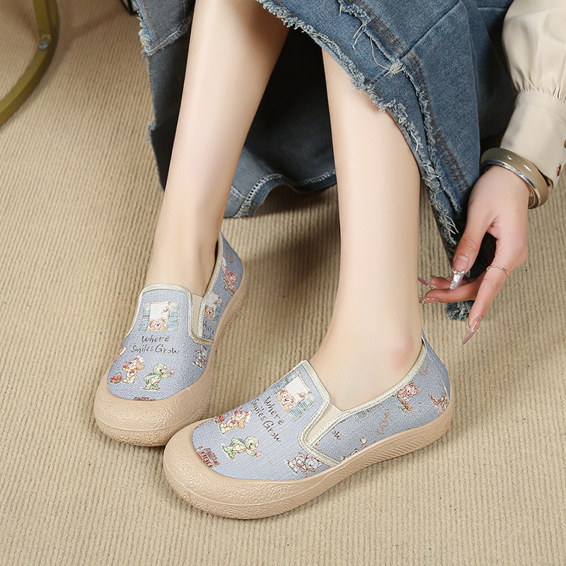 Spring and summer new fisherman shoes, canvas women's shoes, fashionable and versatile, Chinese style, casual, thick soled, lazy, one footed, single shoe for women
