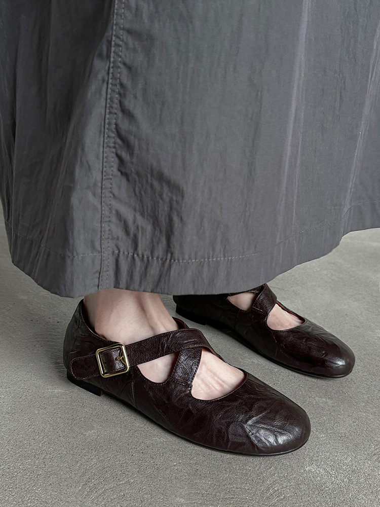 Spring Confession~Round toe cross strap ballet shoes for women, comfortable flat bottomed shallow mouth single shoes
