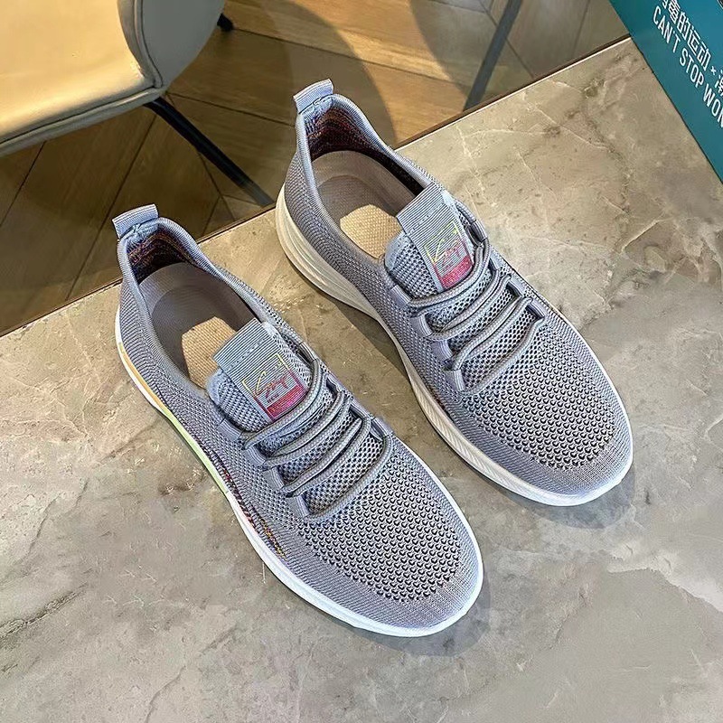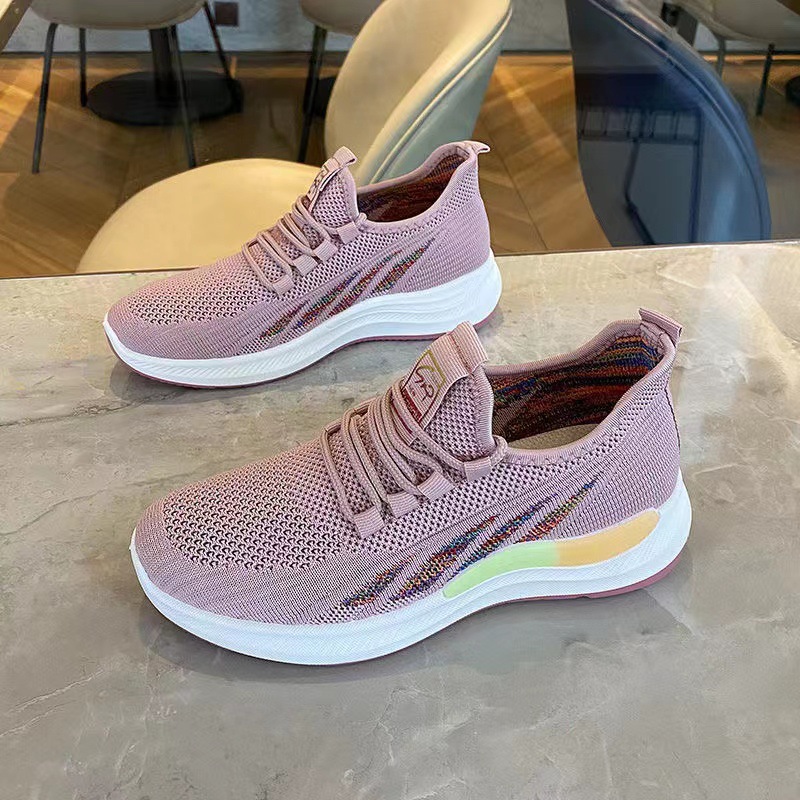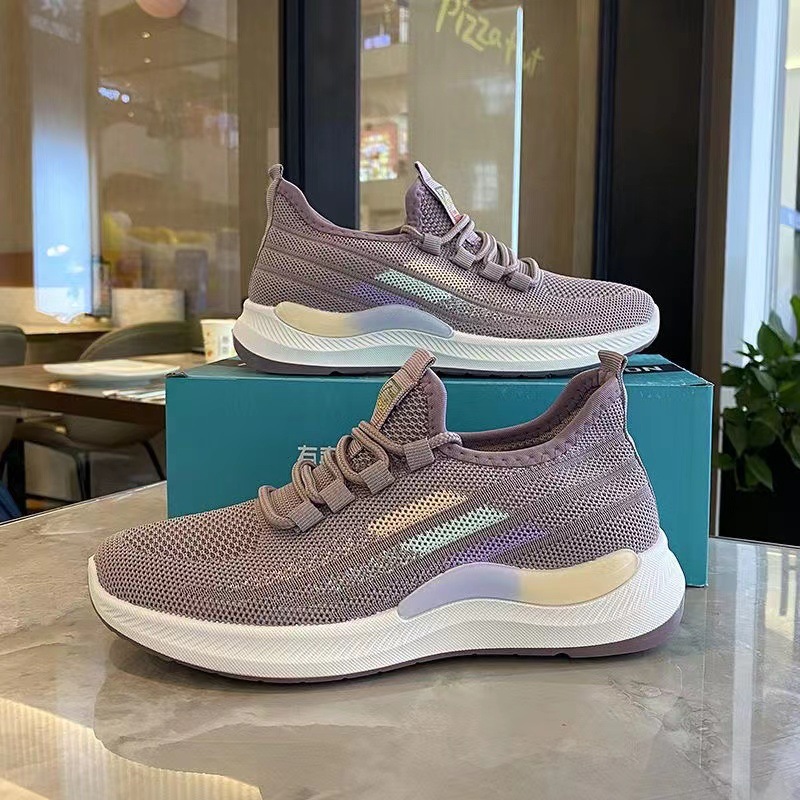 Casual shoes, women's lightweight running shoes, new fly woven breathable soft sole, women's white shoes, fashionable mother's trendy shoes wholesale