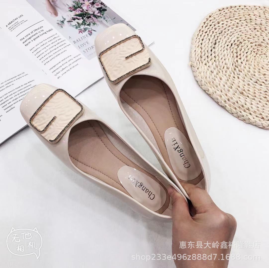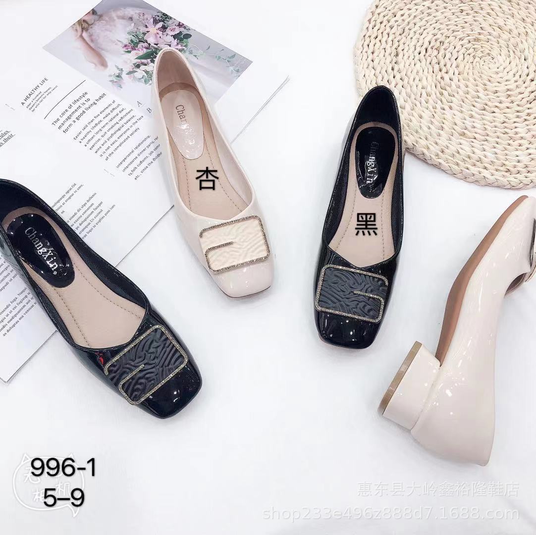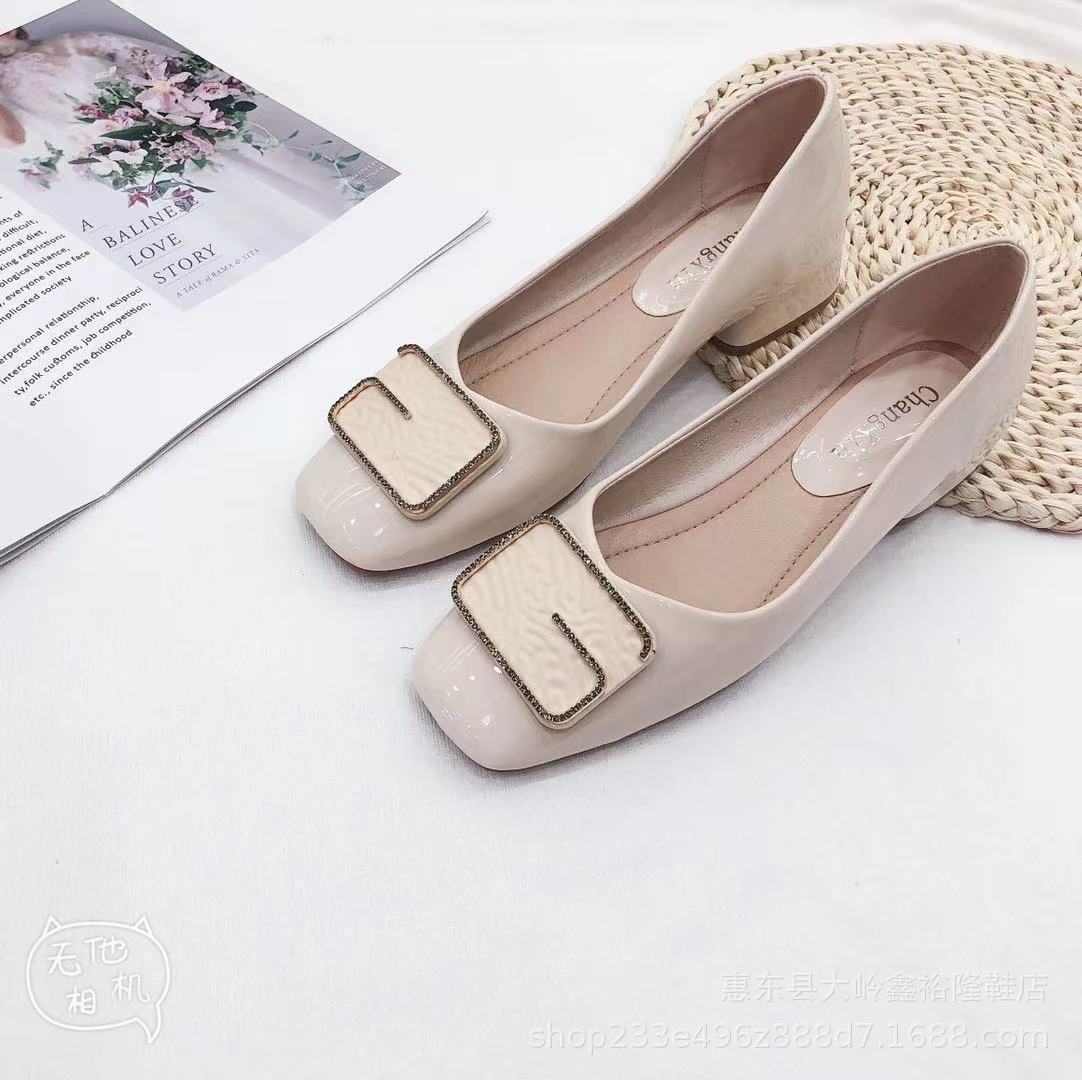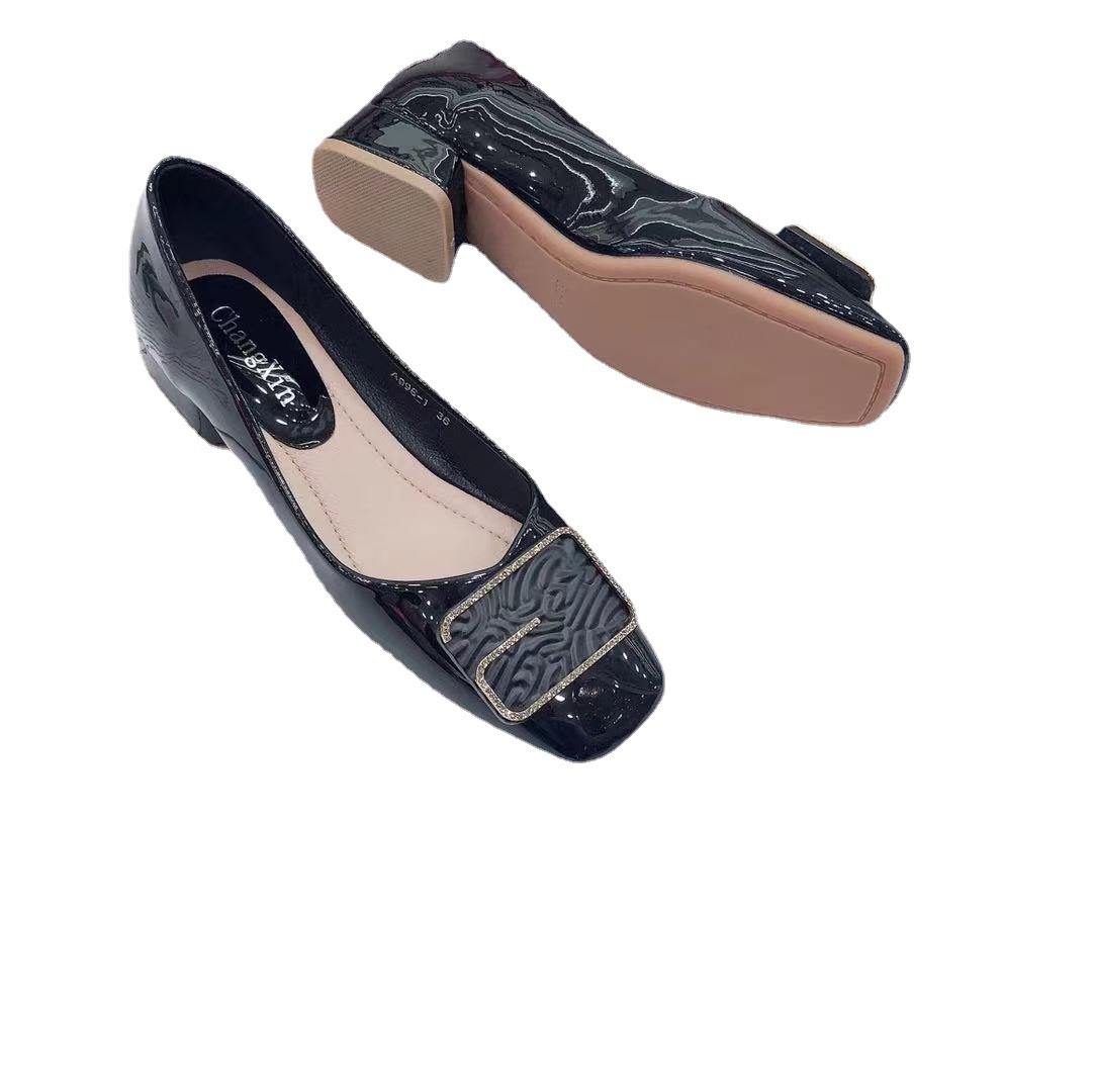 Square toe thick single order shoes for women 2022 spring collection retro British style horse collar buckle mid heel women's commuting shoes