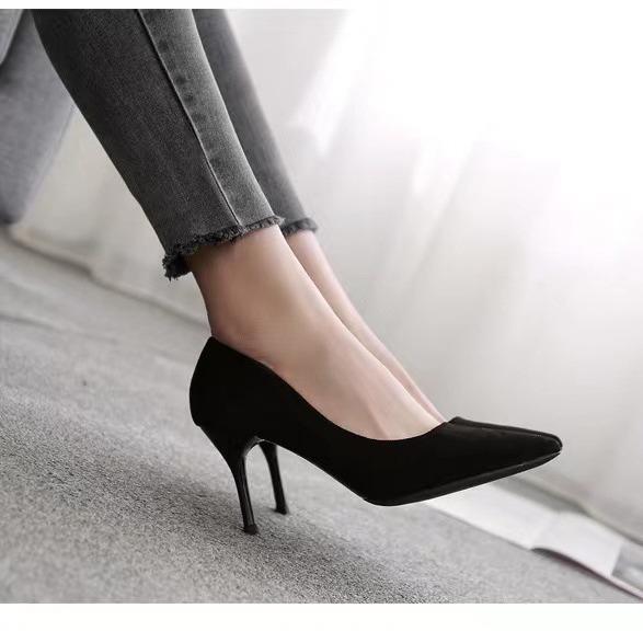 34-42 Large High Heels Women's 2024 Spring and Autumn New Black Fine Heel Pointed Shallow Mouth Suede Professional Work Shoes