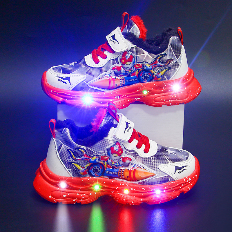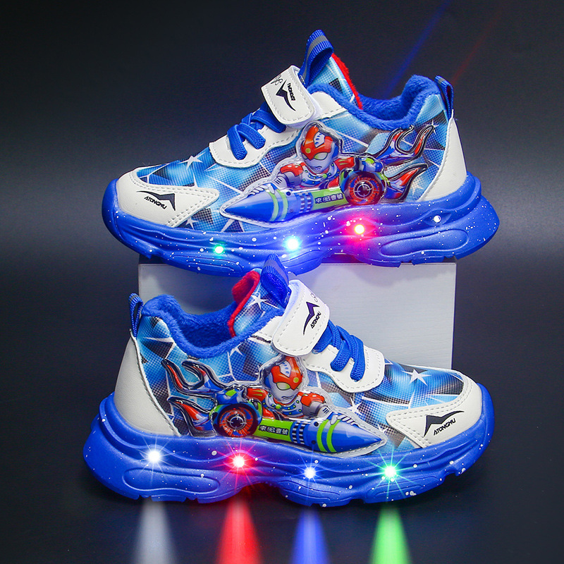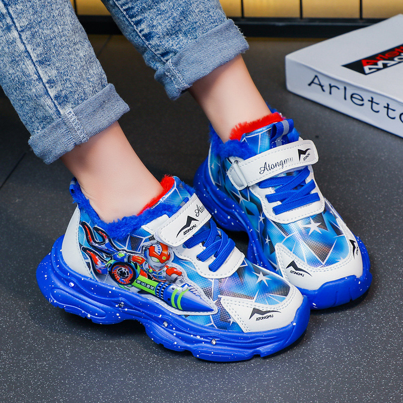Bright Boys' Sneakers 2024 Autumn/Winter New Children's Shoes with Velvet Warmth for Boys, Baby Boys, Small and Medium sized Shoes