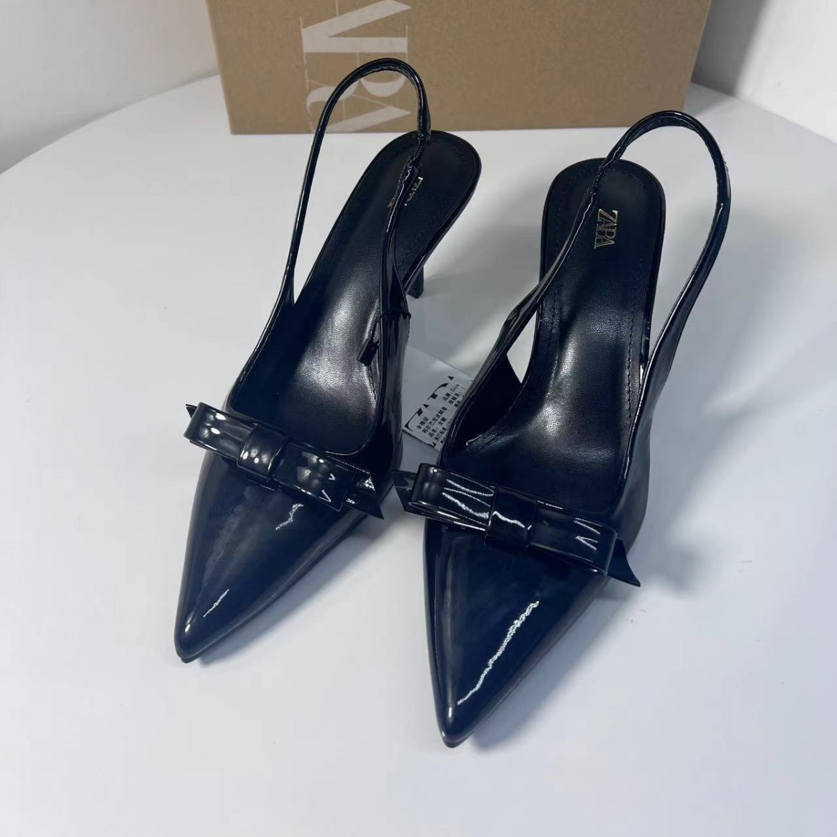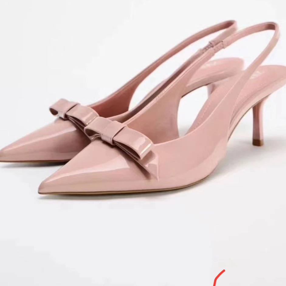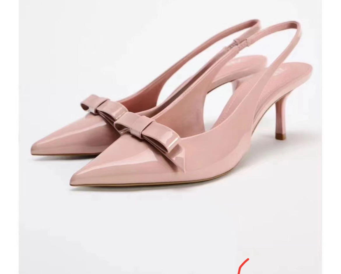 ZA2024 bow patent leather pointed high heels sandals new women's shoes Mueller shoes commuting business versatile women