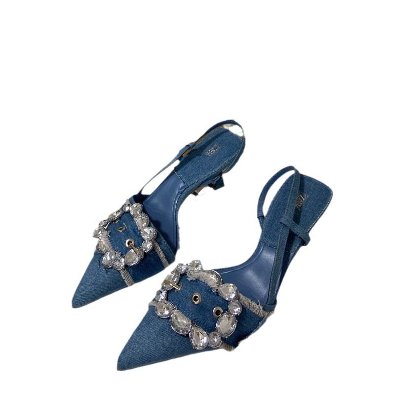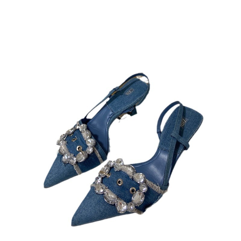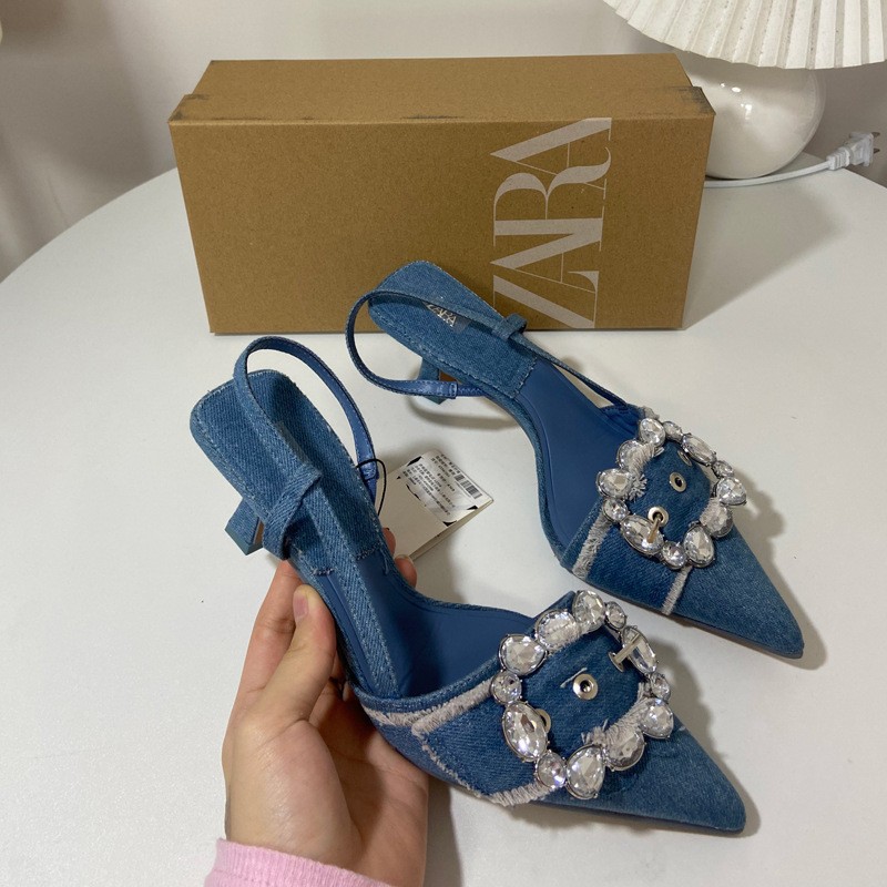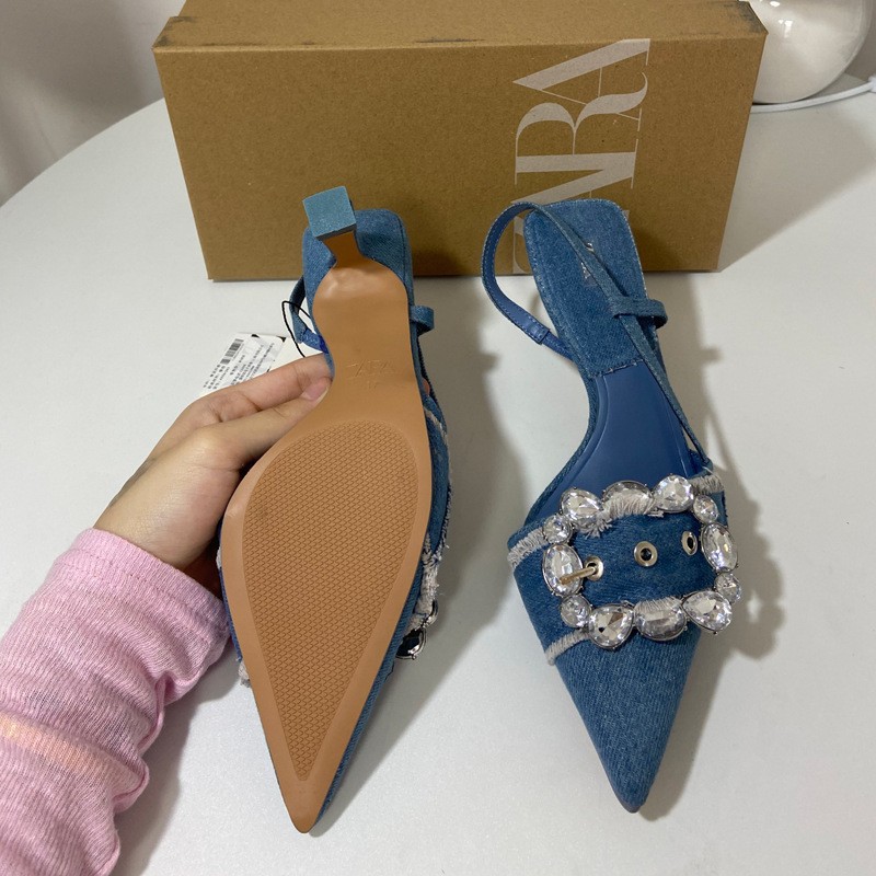 ZA women's shoes 2024 new winter square toe back strap slim heel high heels women's open toe shallow mouth fashion single high heels women