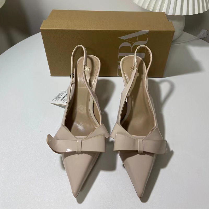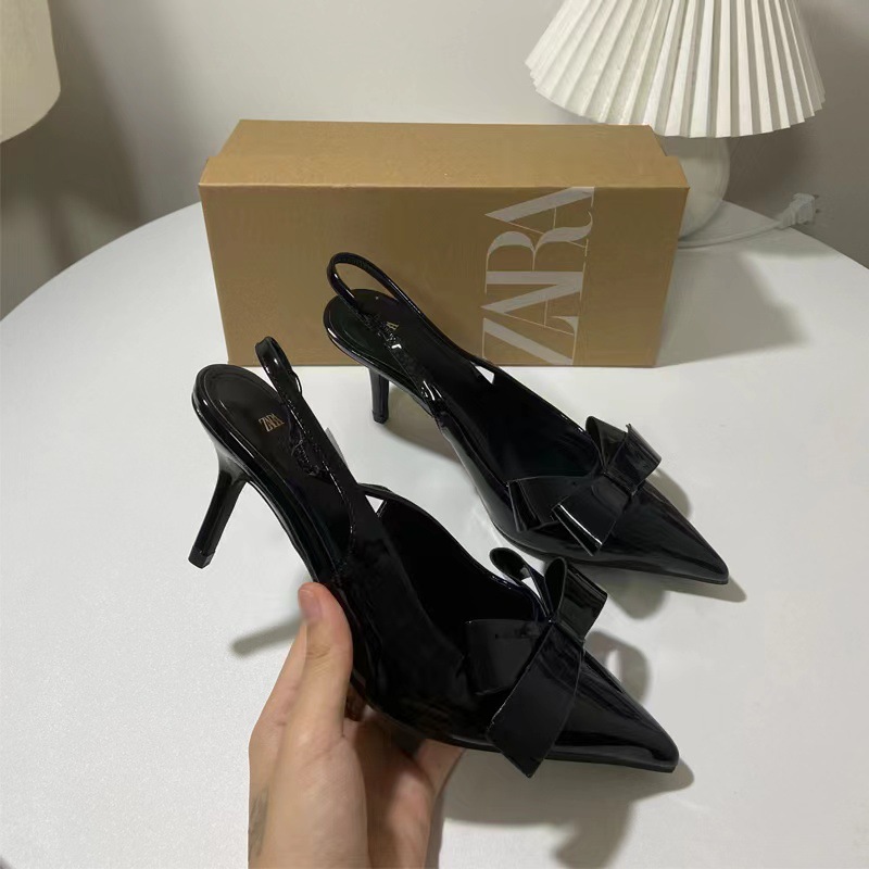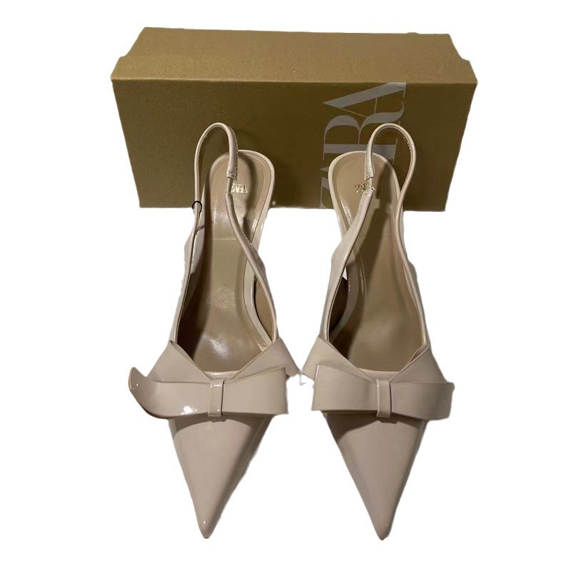 ZA2024 Spring/Summer High Heels New Fashionable and Versatile Women's Shoes with Lacquer Surface, Casual Bow, Pointed French Single Shoes for Women