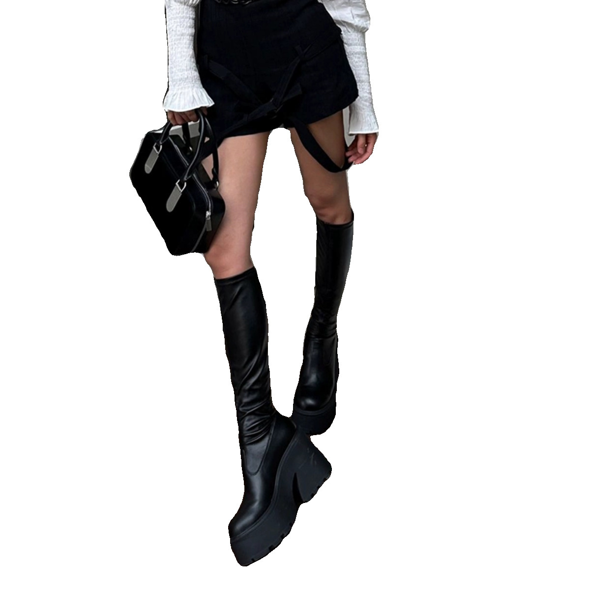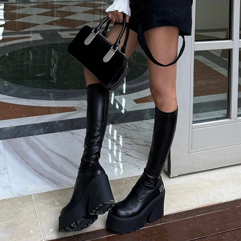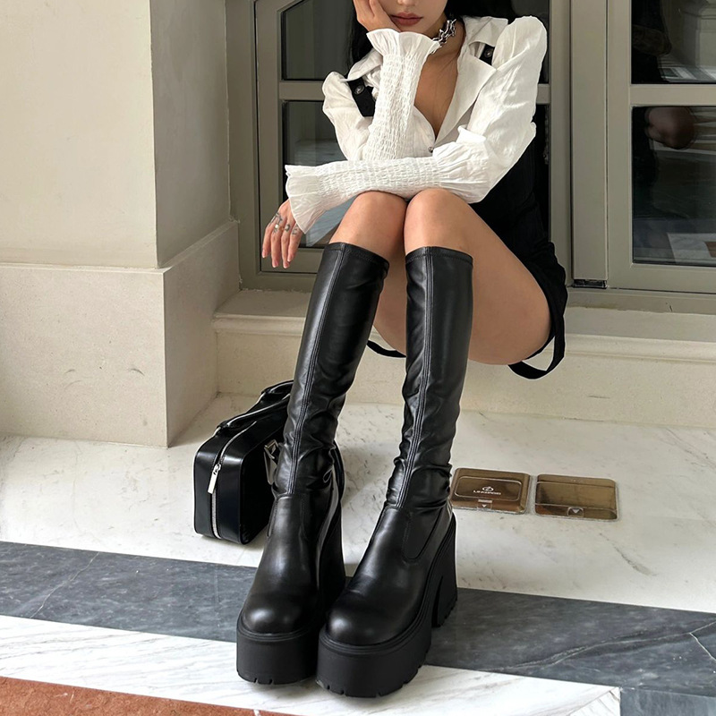 Black boots, women's thick soled high-heeled long boots, 2023 new high top knight boots, elastic slim boots
