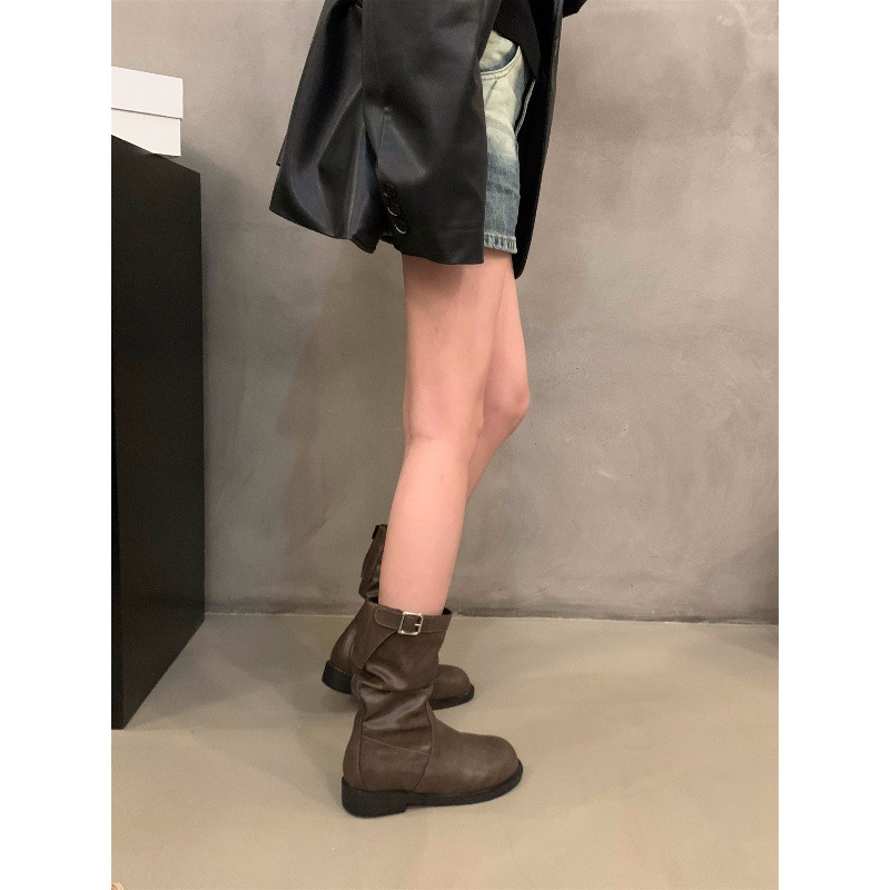 Coarse heeled retro midsole boots, knight boots, women's shoes, 2024 new autumn and winter with pile pile small short boots, Martin boots