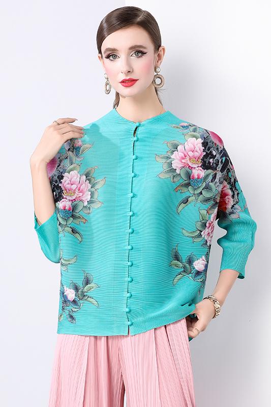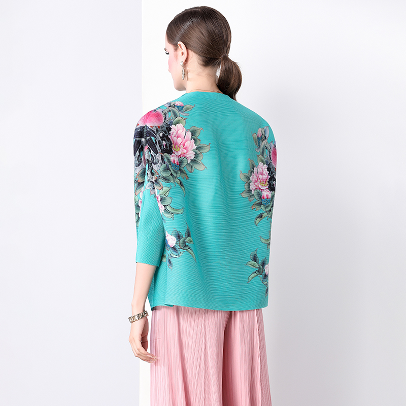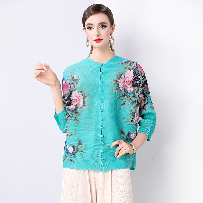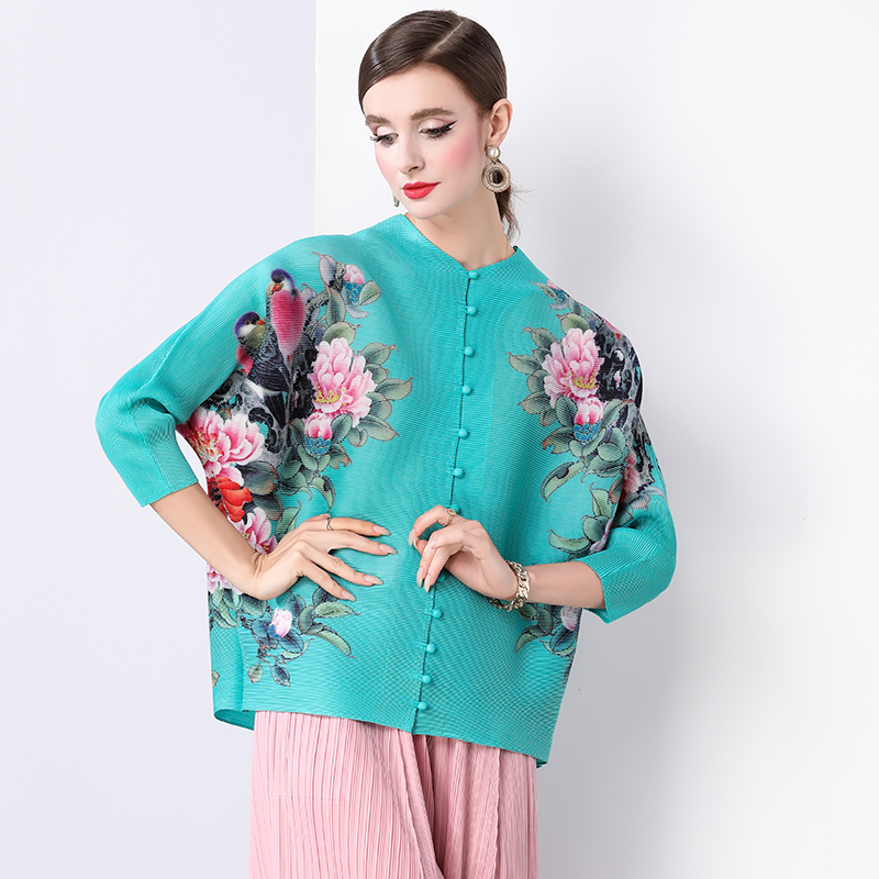 Miyake 2024 Autumn New Large Loose Long Sleeve Folded Short Top Coat New Chinese Style Shirt for Women